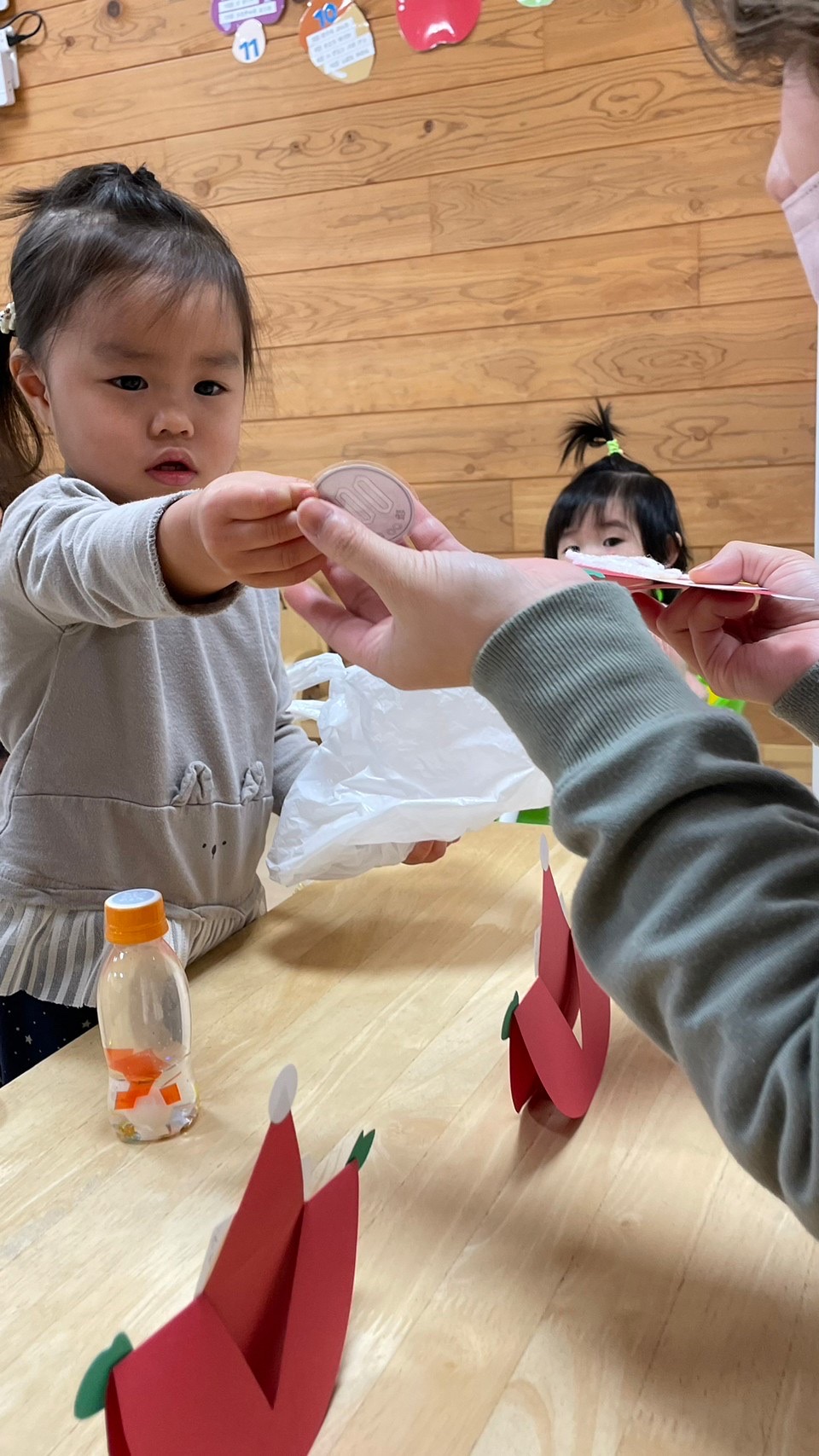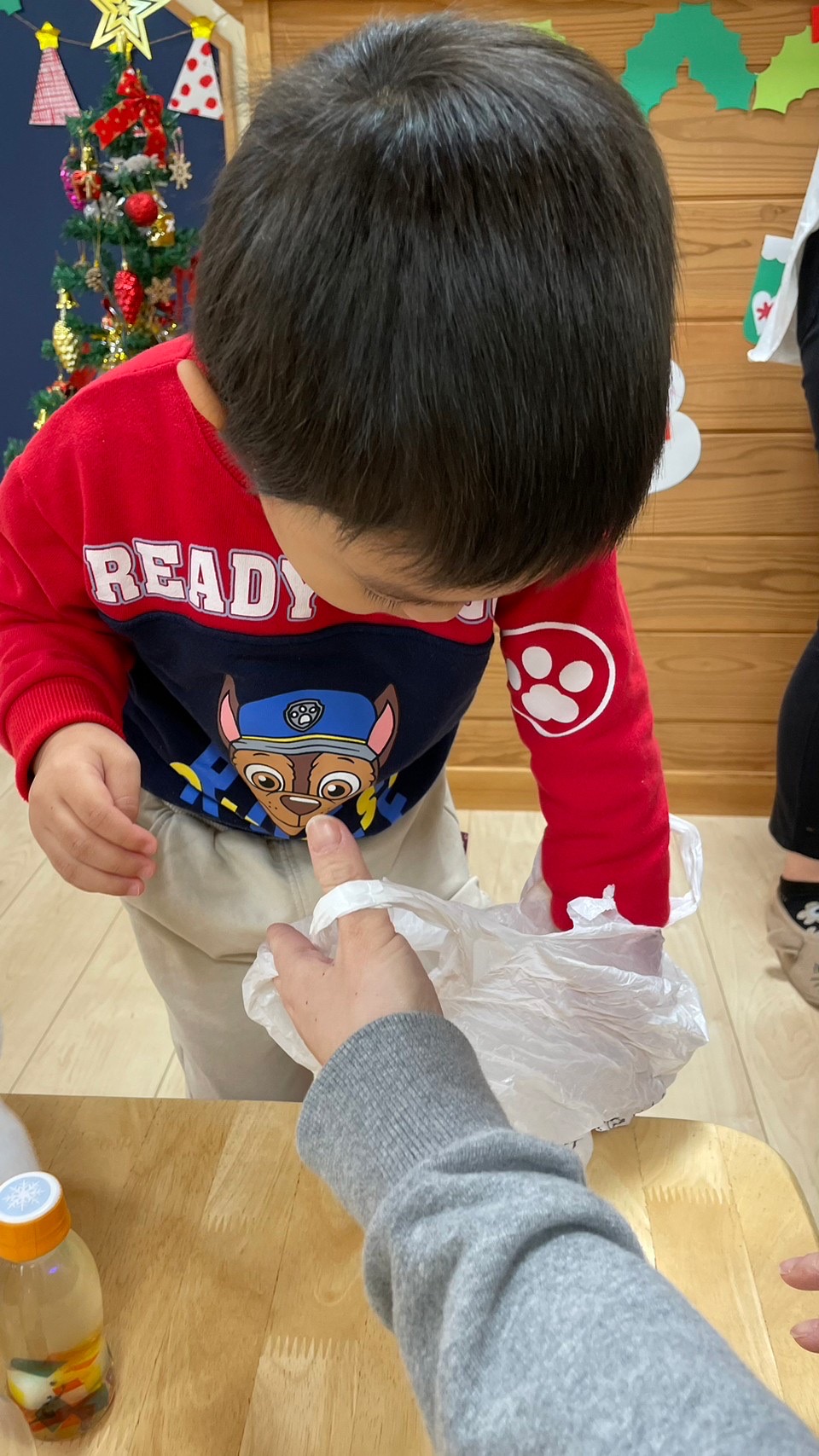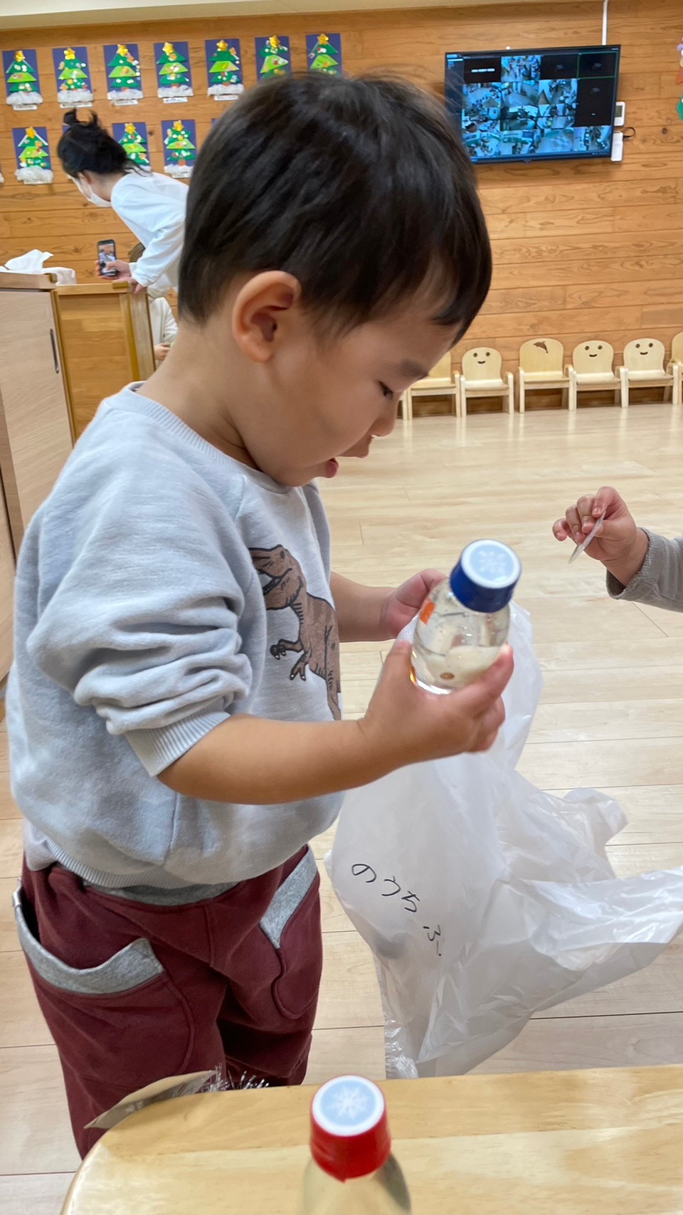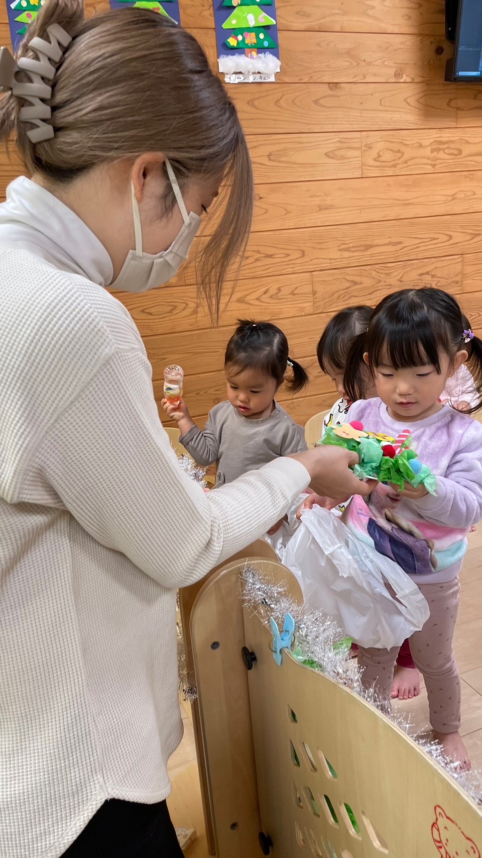 子どもたちが作った3種類の作品、リース、スノードーム、ユラユラサンタさんを買いに子どもたちが買い物に行きました☺️✨
