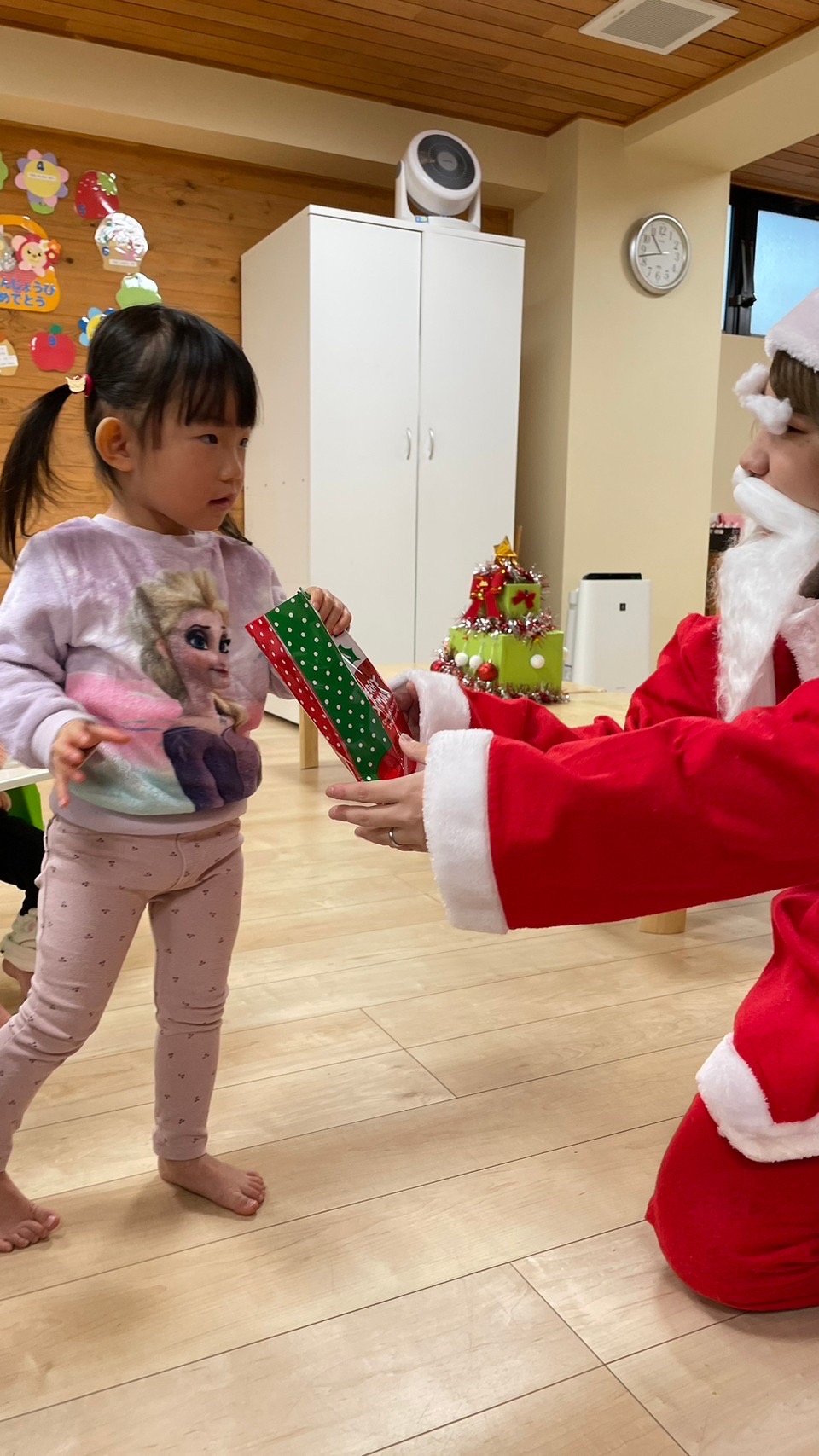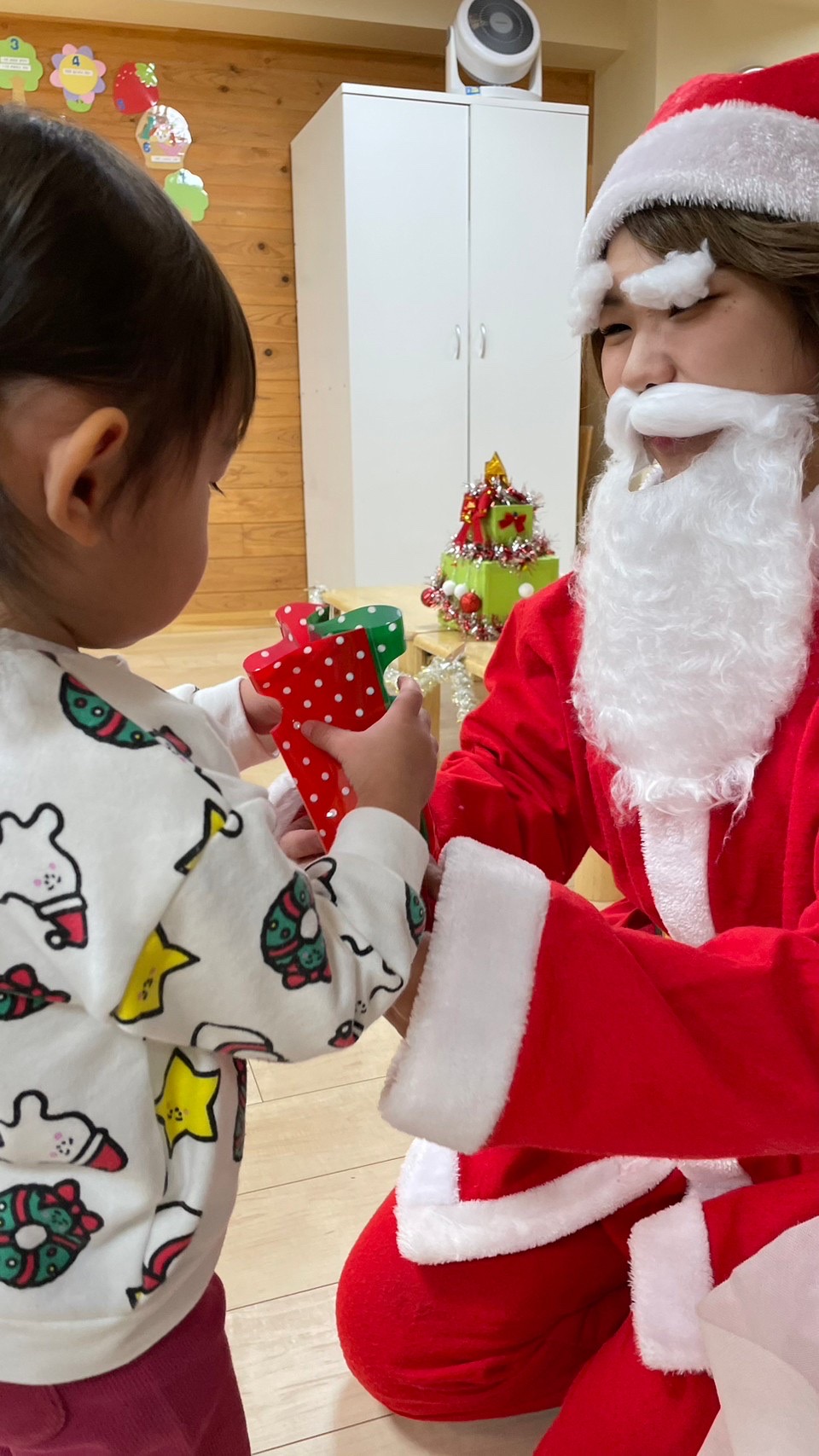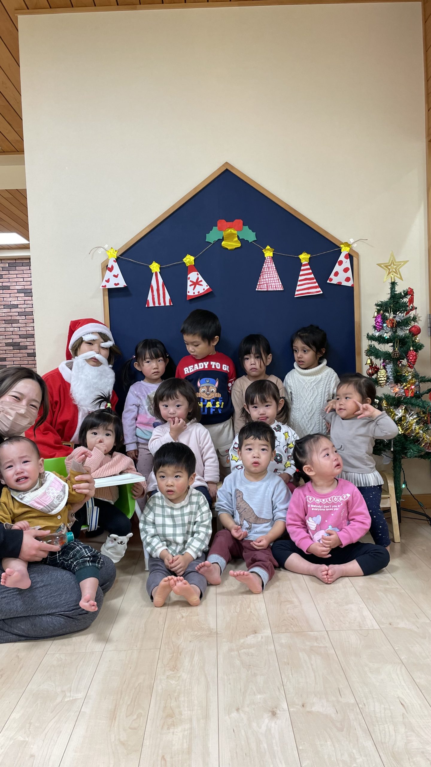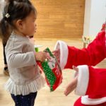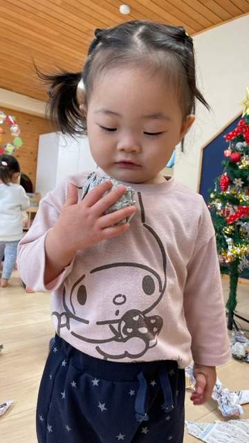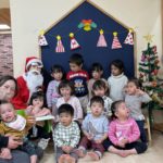 サンタさんがきてくれました🎅❤️少し表情が固い子どもたちでしたが、一人一人プレゼントを貰いに行くことが出来ました💮