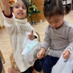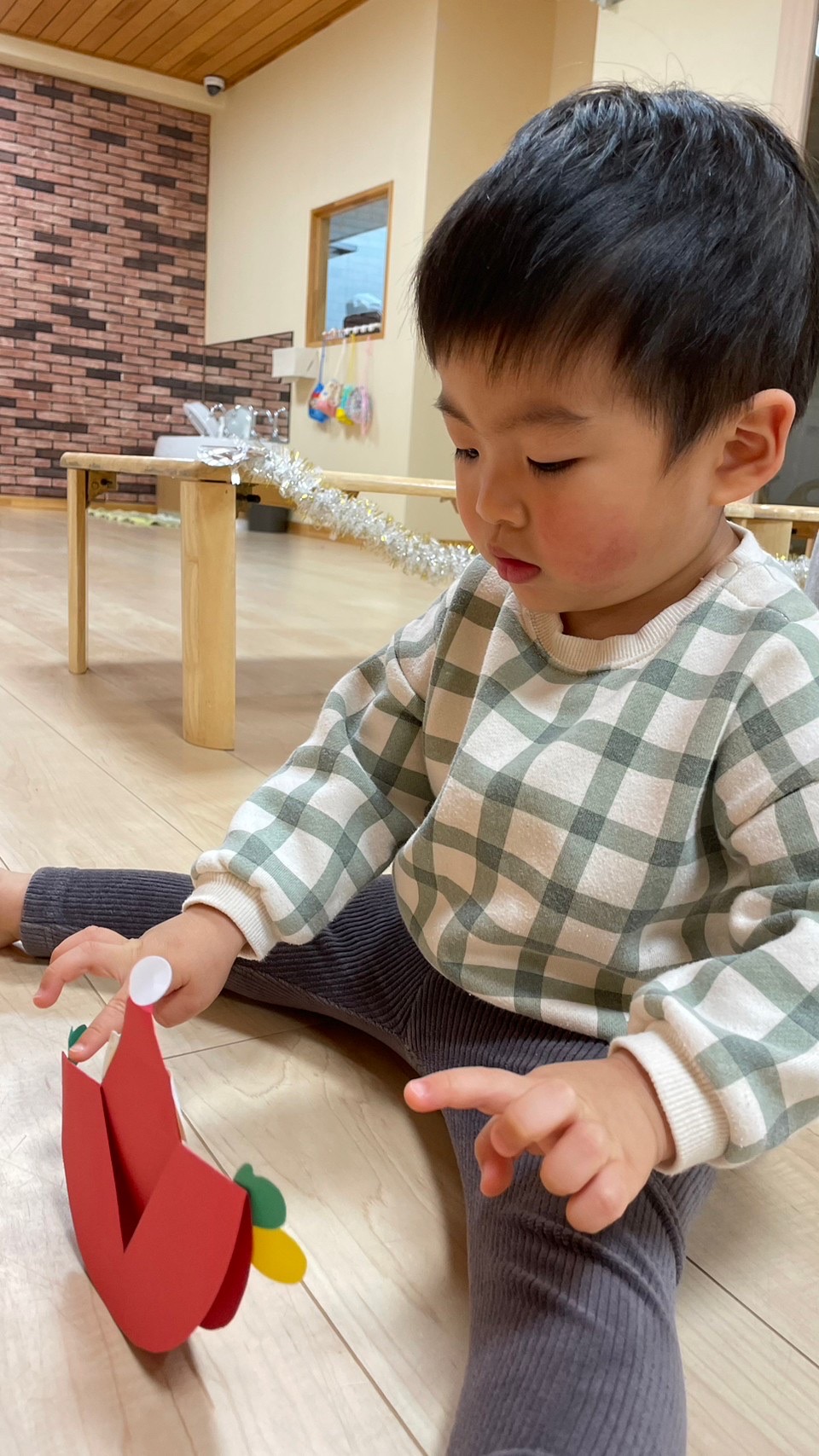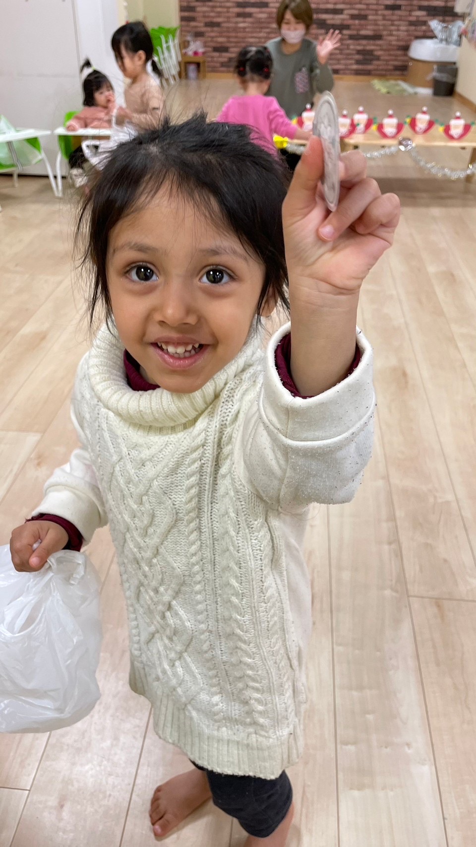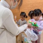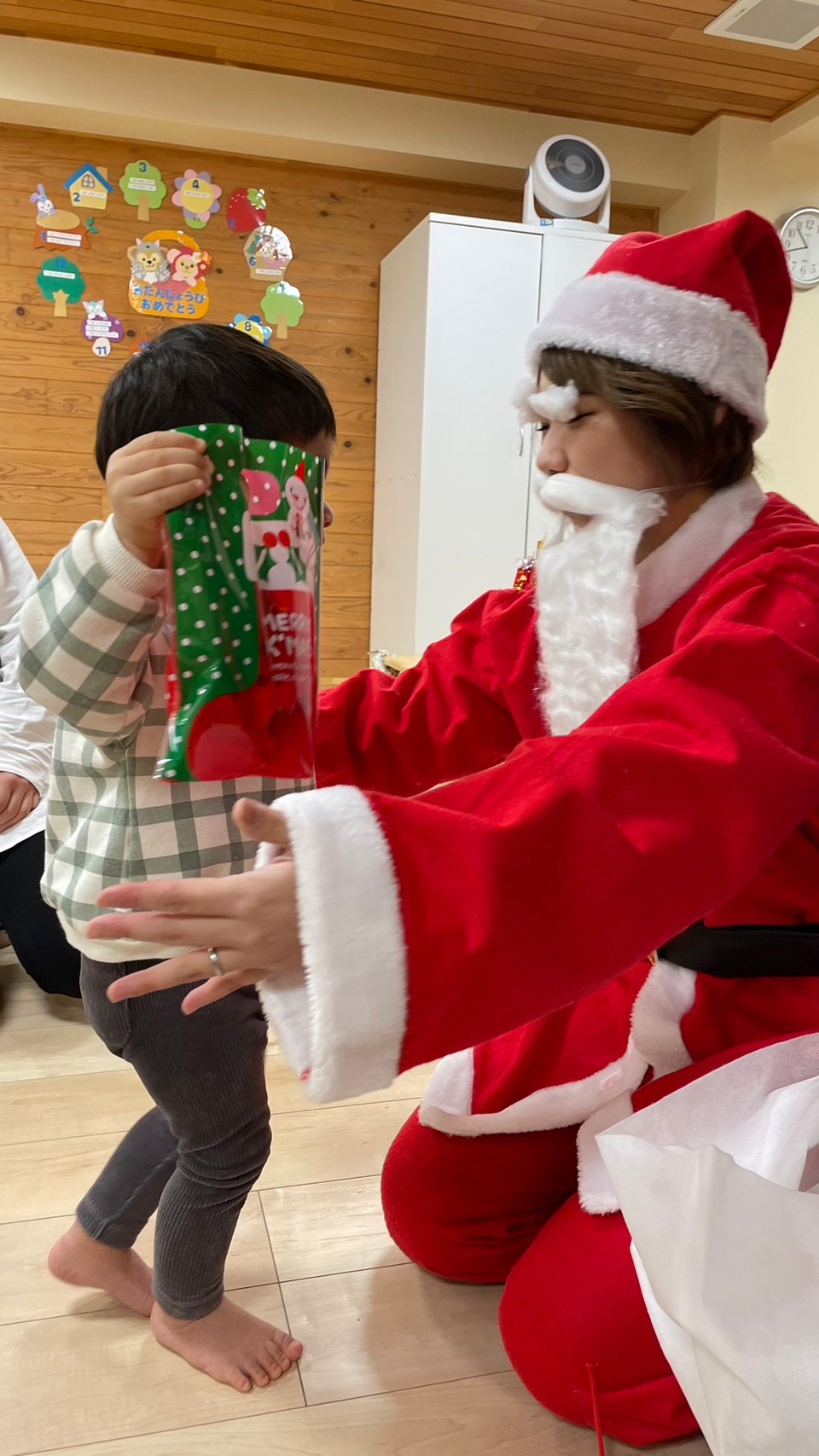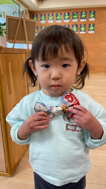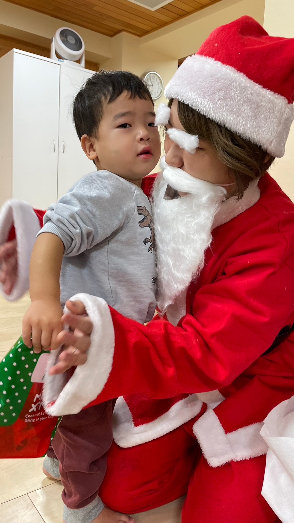 サンタさんがきてくれました🎅❤️少し表情が固い子どもたちでしたが、一人一人プレゼントを貰いに行くことが出来ました💮