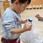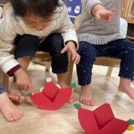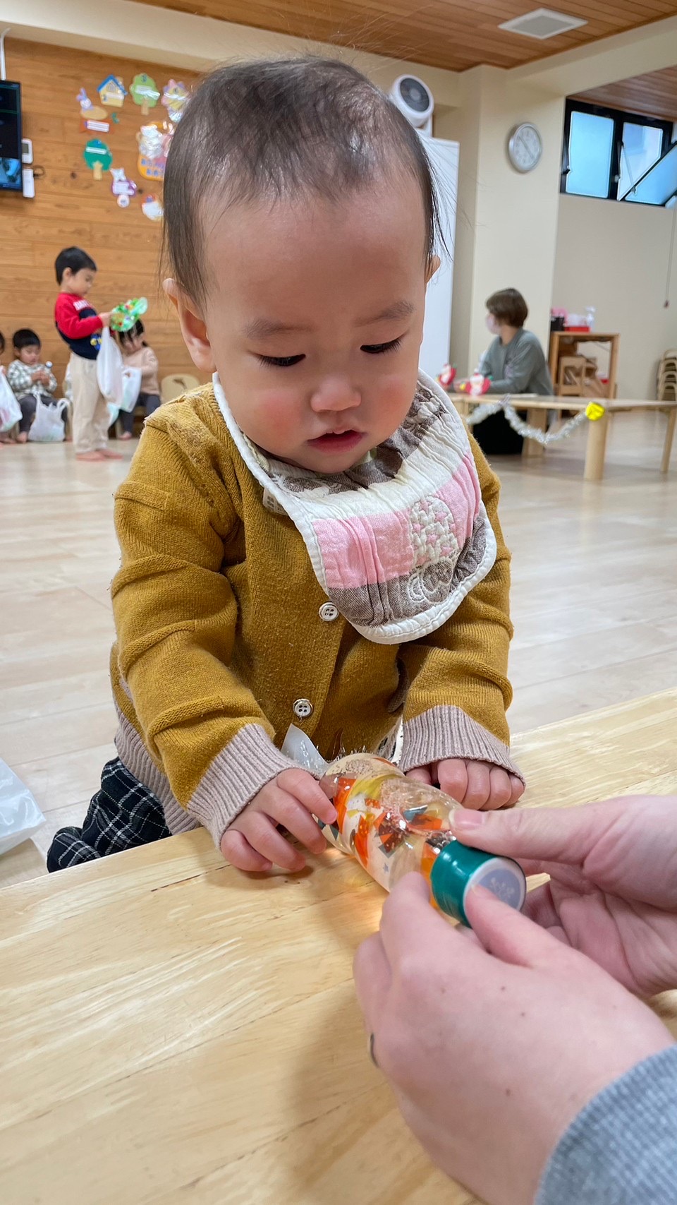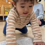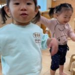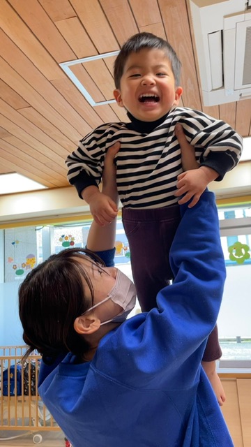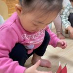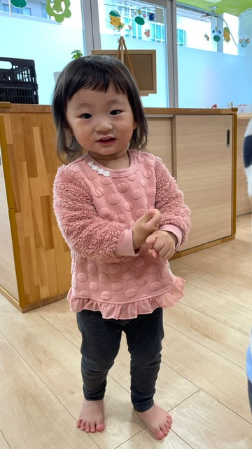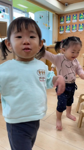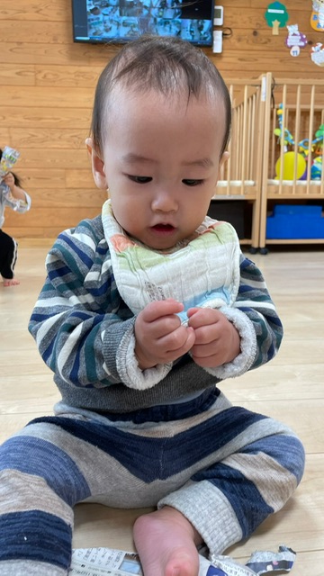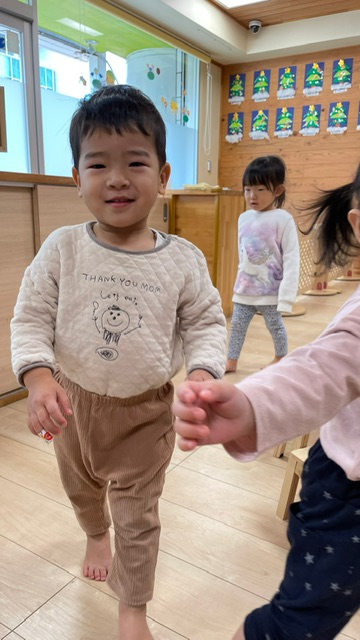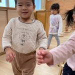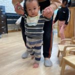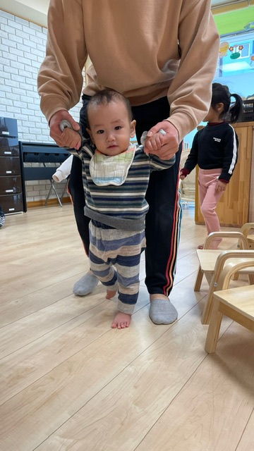 保育士と一緒に0歳児さんも参加🚶♀️