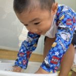保育士と一緒に練習した後は、自分で水をだして楽しんでいました😆