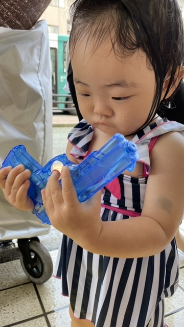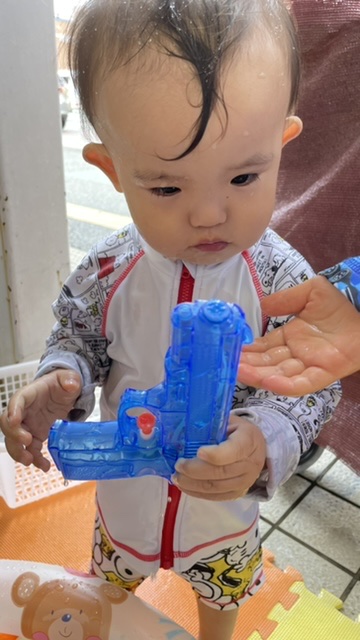 そして今日はいつもよりビッグサイズの水鉄砲が登場🔫🐳