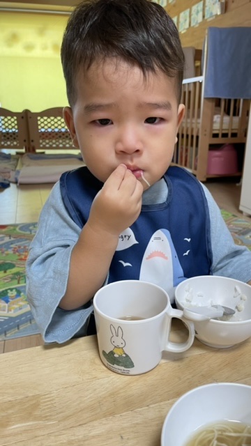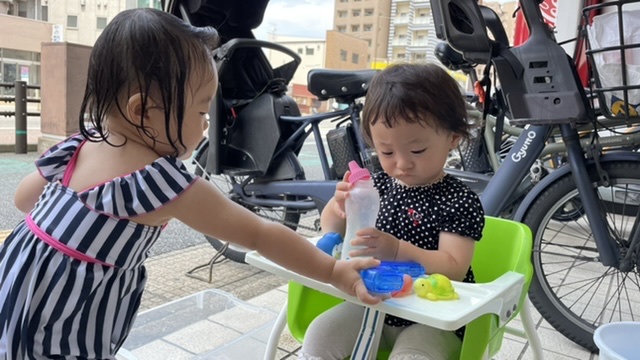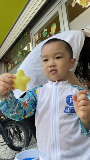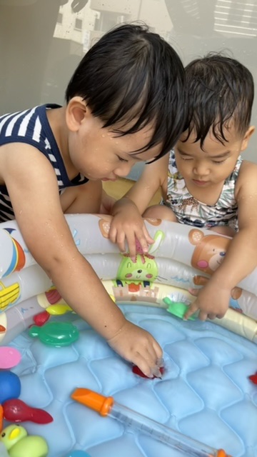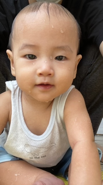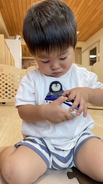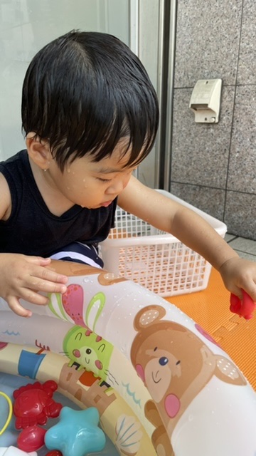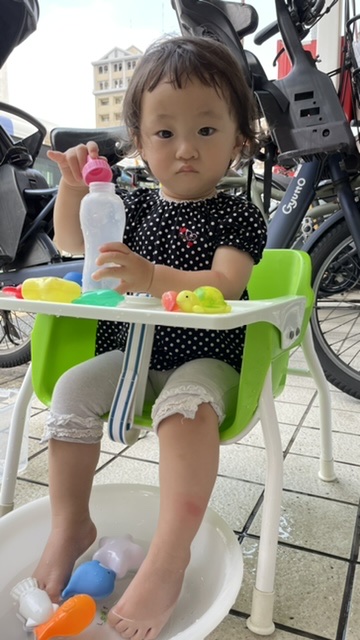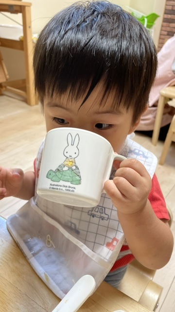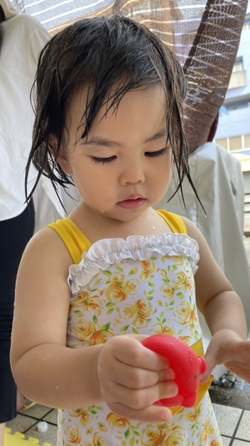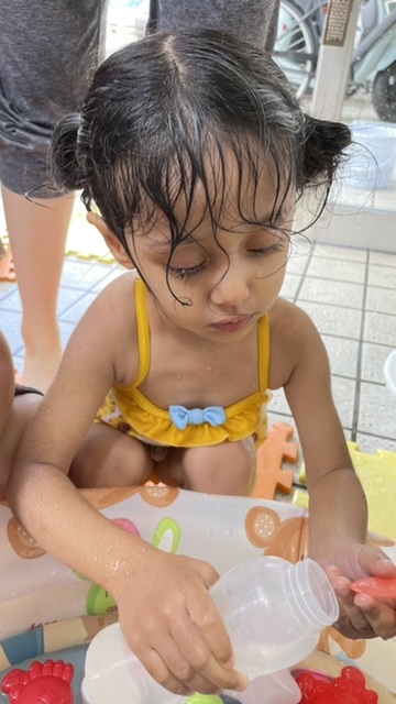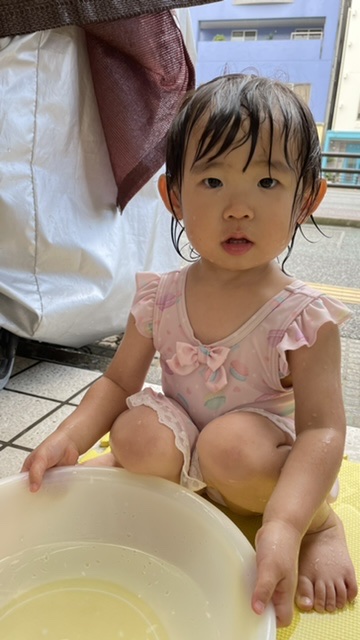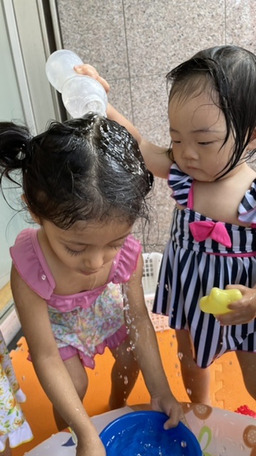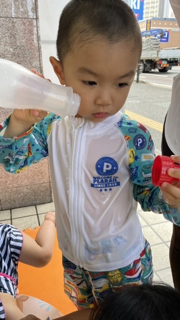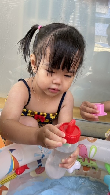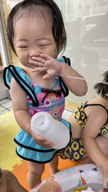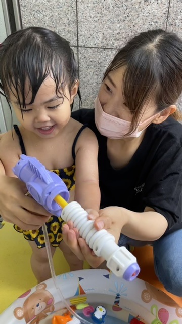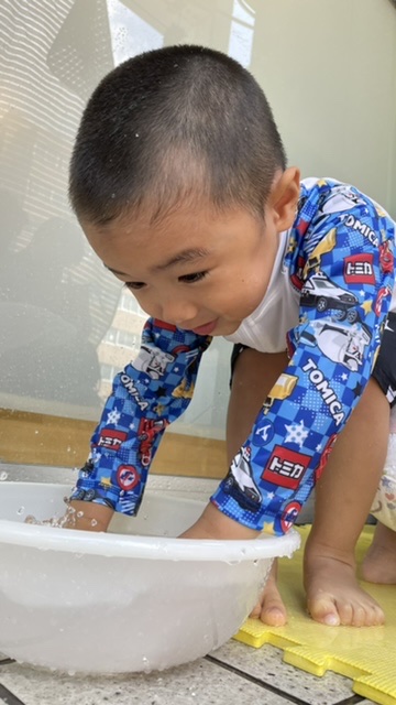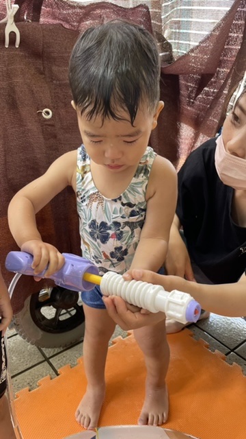 保育士と一緒に練習した後は、自分で水をだして楽しんでいました😆