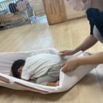 布団の上に乗って実際に地震の揺れを感じてみました!!!ちょっとアトラクションに乗っている様な雰囲気を味わっていました🫣