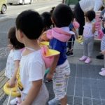 非常ベルの音が鳴ると速やかにお外に移動し誰も泣くことなく先生のお話を聞いていました😌