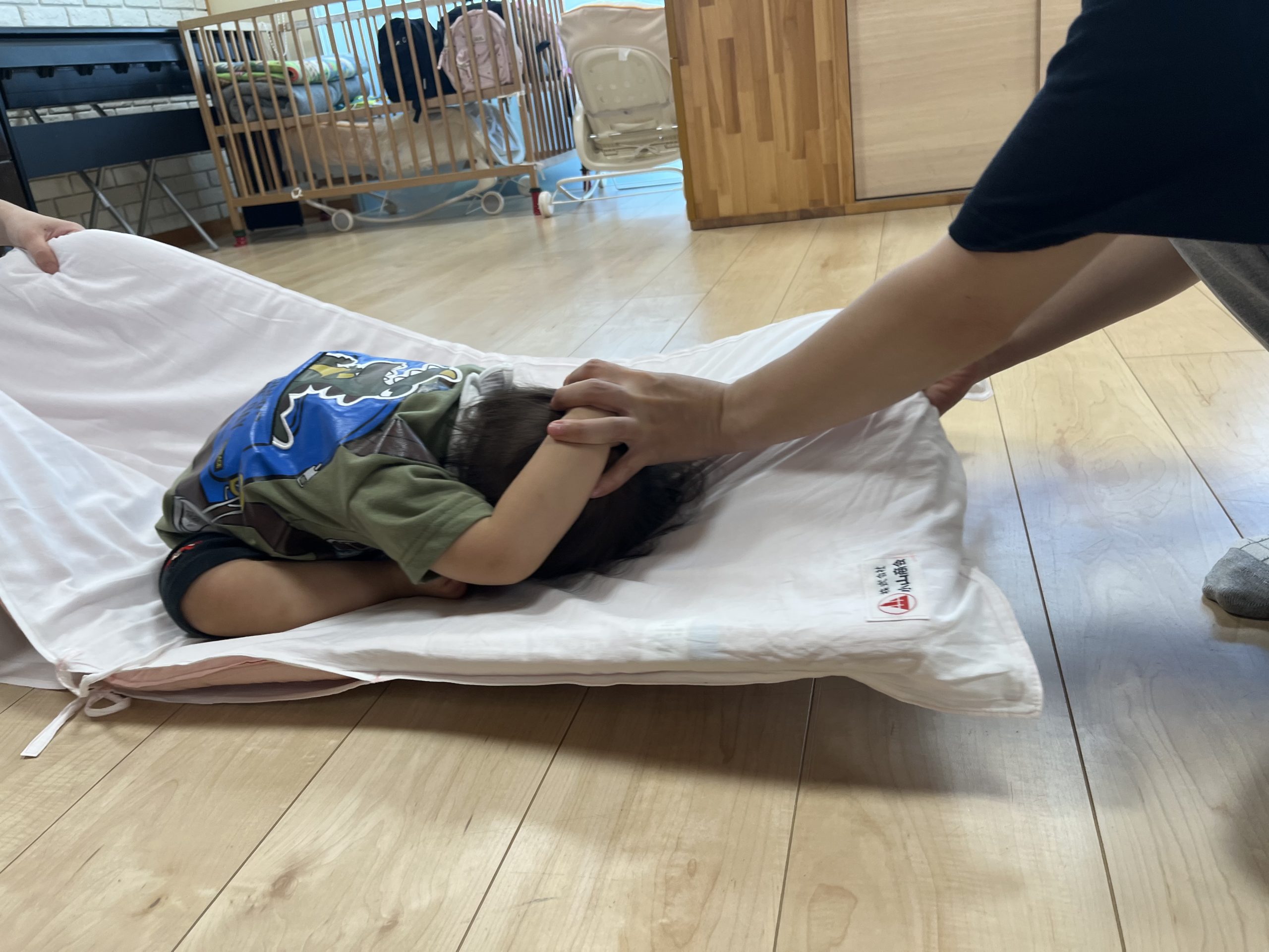 布団の上に乗って実際に地震の揺れを感じてみました!!!ちょっとアトラクションに乗っている様な雰囲気を味わっていました🫣