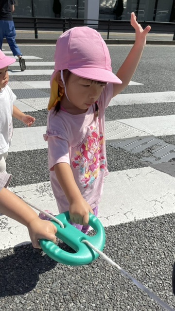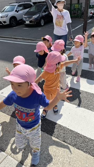 横断歩道はしっかり手を挙げます✋
