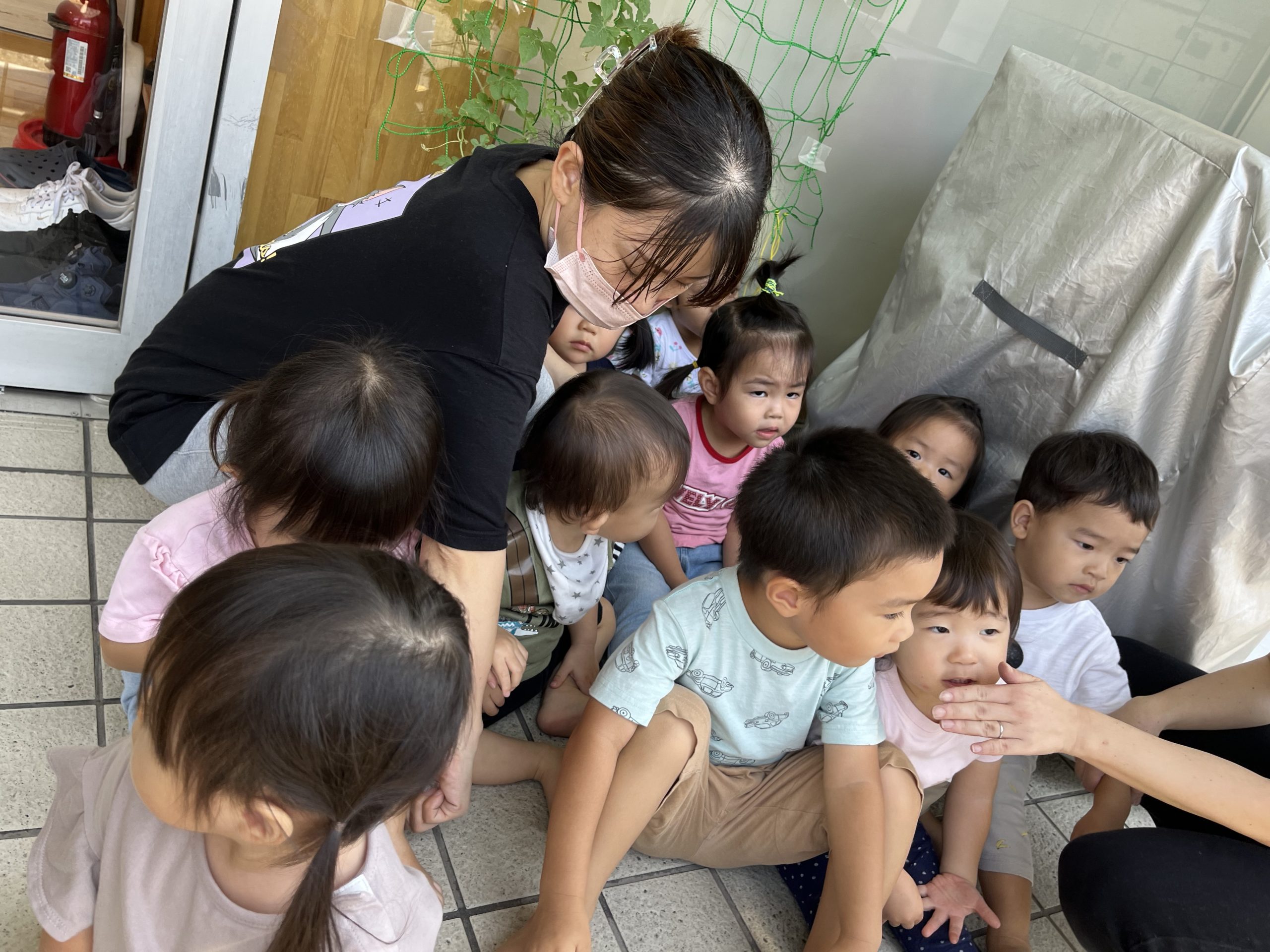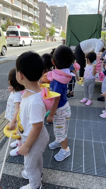 非常ベルの音が鳴ると速やかにお外に移動し誰も泣くことなく先生のお話を聞いていました😌