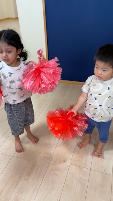 初めてポンポンを持って練習しましたが、とっても上手に踊れていました🎶