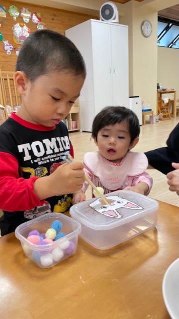 2歳児はお箸にも挑戦‼️