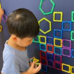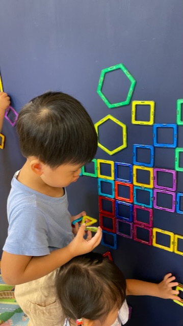 マグフォーマーを足に当て「足にはくっつかないね〜」と不思議そうにしていましたよ🤭
