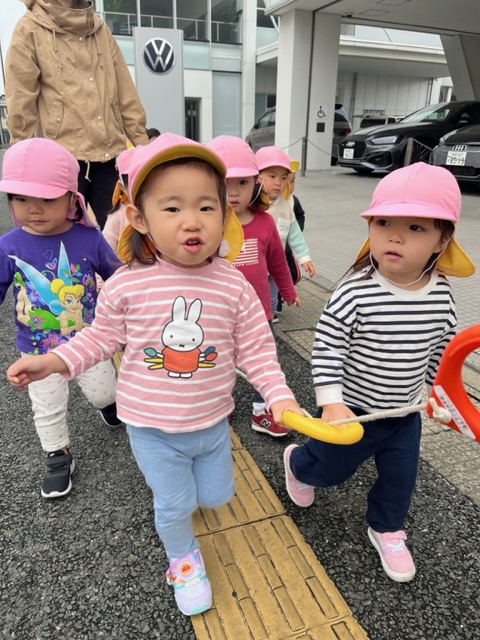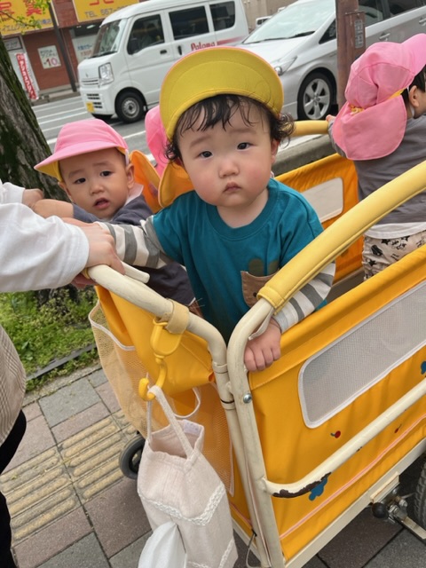 まだ誘導ロープを握って歩けない子は、散歩車に乗ってお散歩です✨