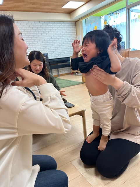 まだ保育園生活に慣れていない子は涙がでましたが、