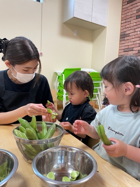 そら豆の皮むきをしました。