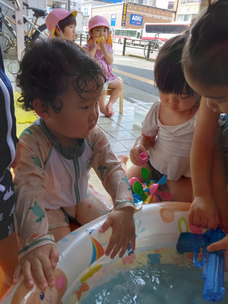 キラキラが動いてる!と驚き、1歳児さんにも見せてあげたり遊び方を教えてあげる姿もありましたよ🥰1歳児さんもとても嬉しそうに遊んでいました💓