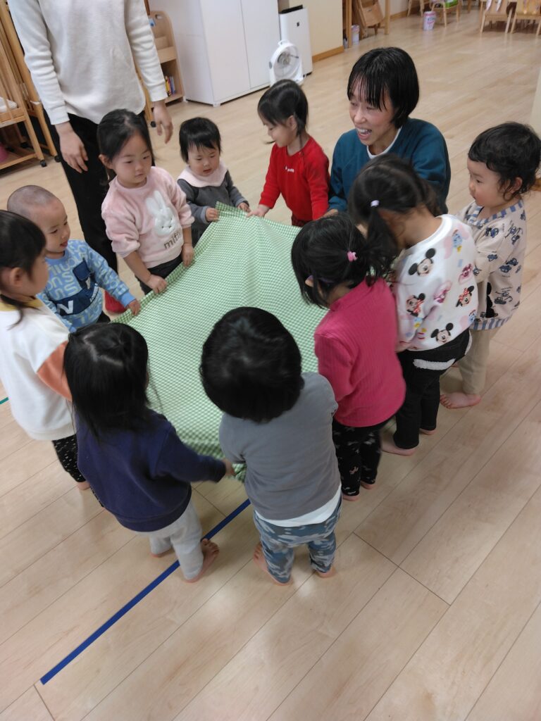 お歌に合わせて今度は布やお手玉も使いました💓