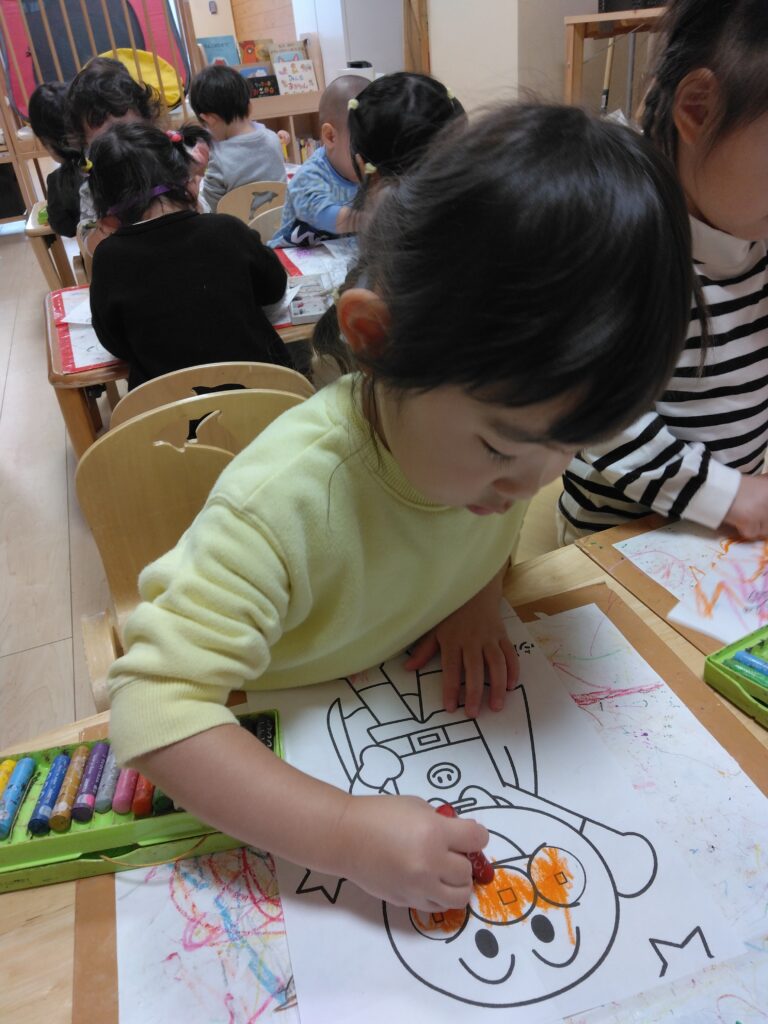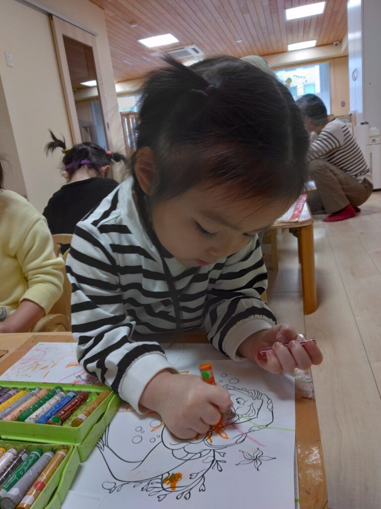 今日はお絵描きをしました。好きなイラストに色を塗ったり絵を描いたりしています✨