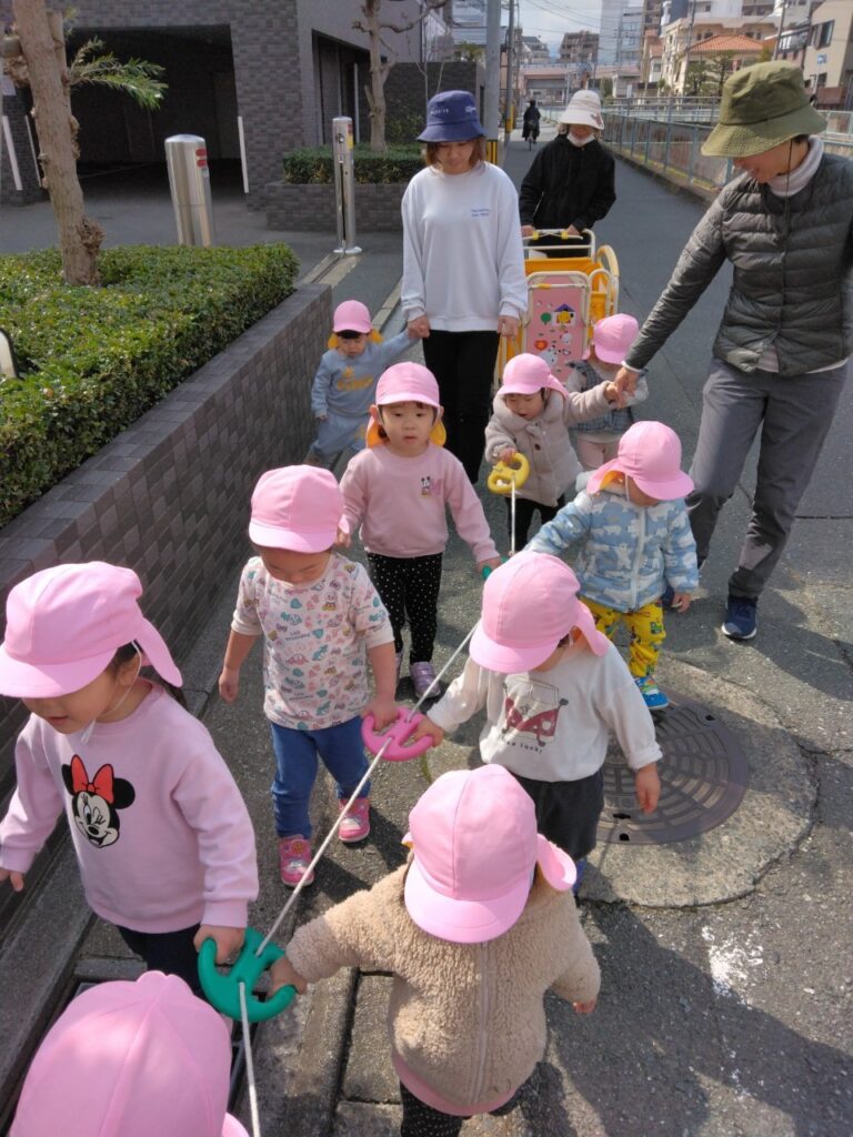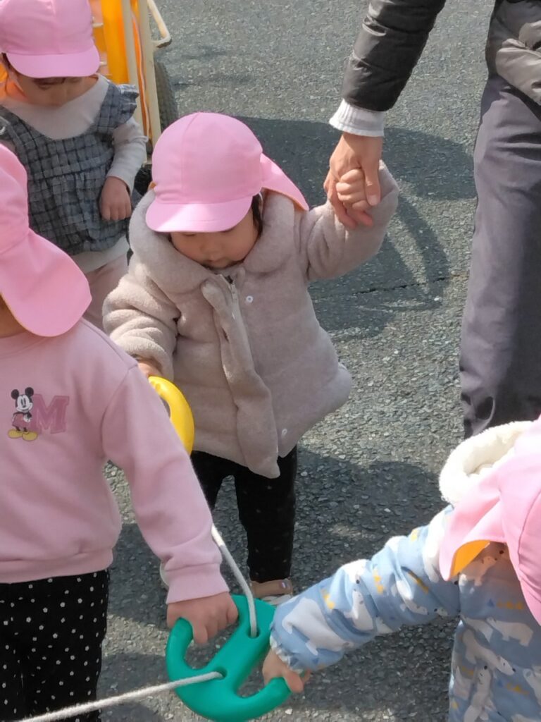 0歳児のお友達も歩けるのが上手になったので、少しだけ誘導ロープを握る練習をしました🎵