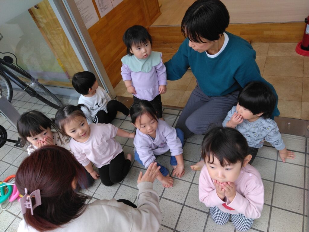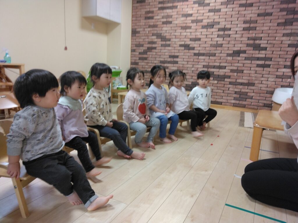 保育士の話をしっかり聞いている子どもたちです🎵