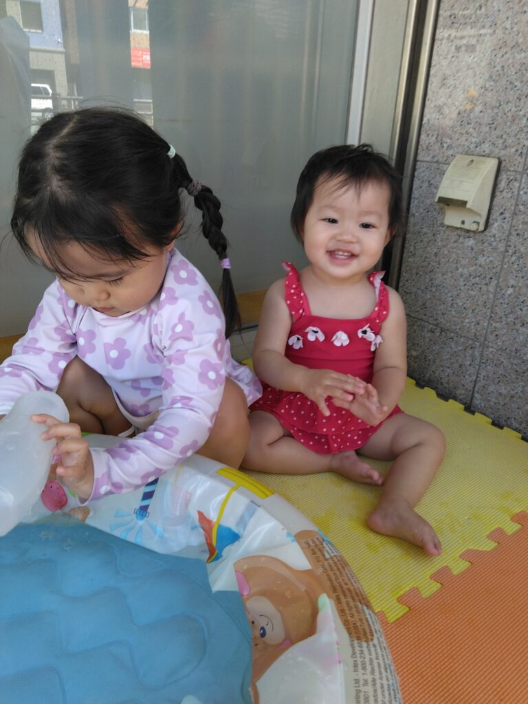 頭から水をかけたり、容器に入れたりしても楽しんでいます🎵