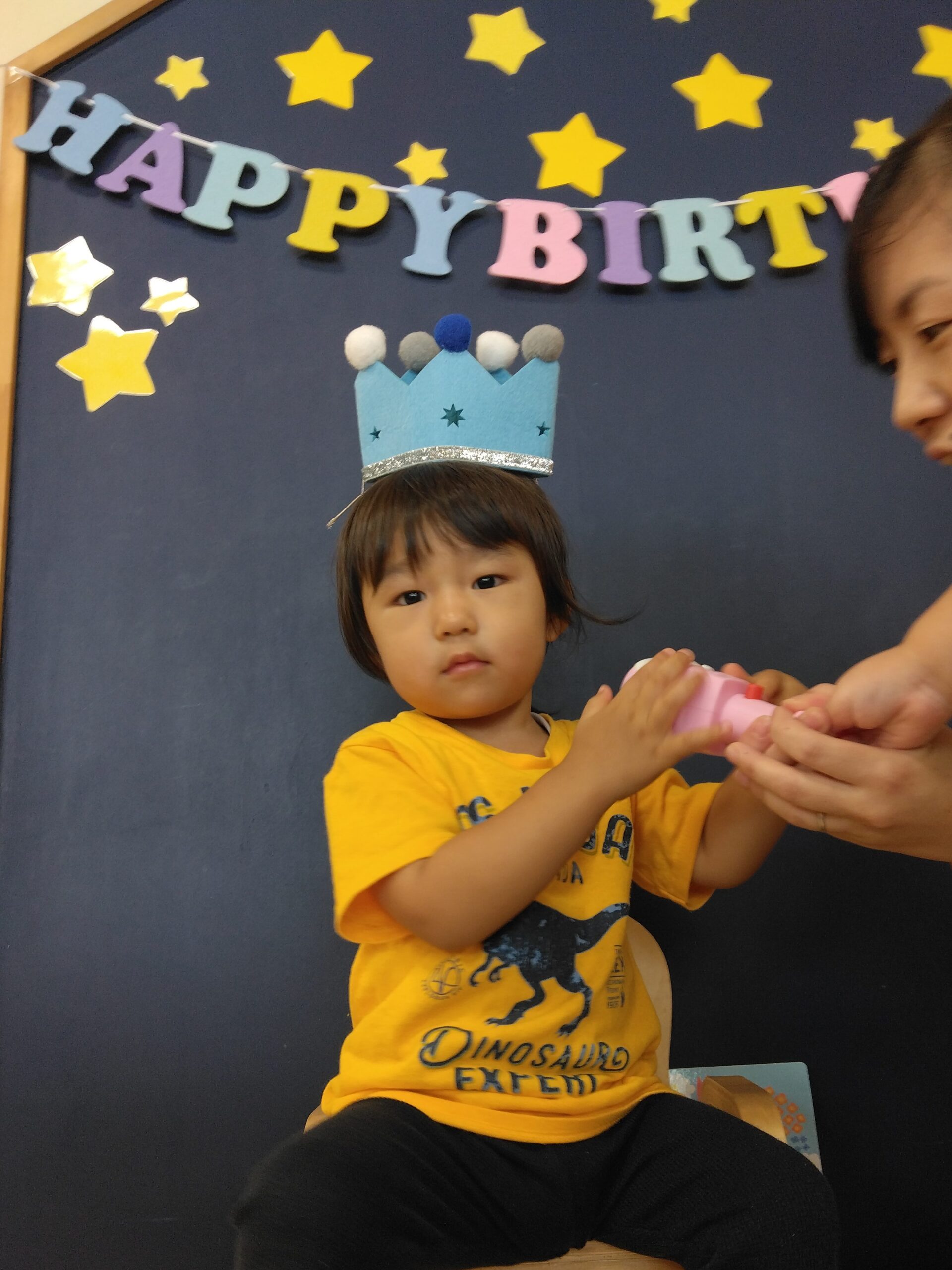 マイクに向かって答えるお誕生児さんです🎵