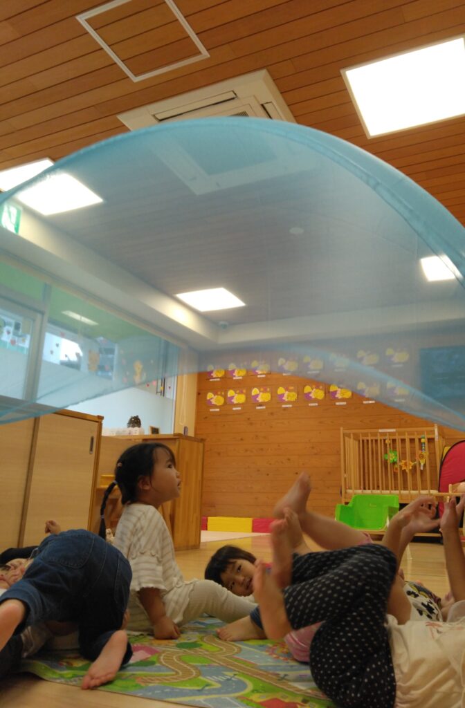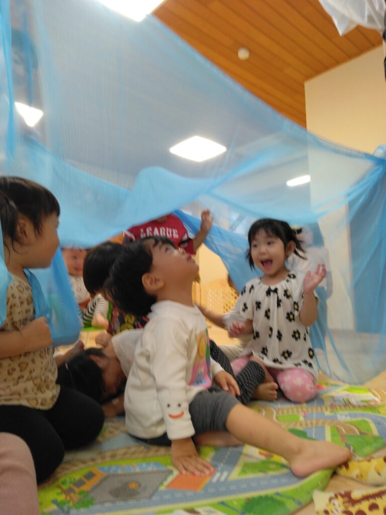 大きなオーガンジーの登場に、子どもたちも嬉しそう!
