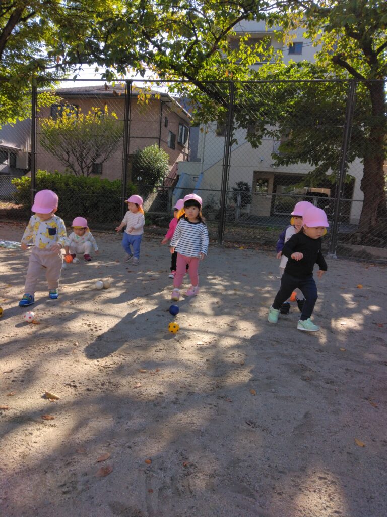 今日は磐瀬公園に行きました。ボールを広場に広げて、「では皆さん、どーぞ!」の合図でボールを探しはじめます🌟