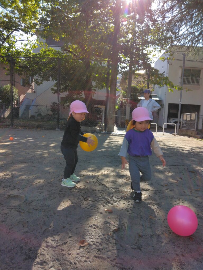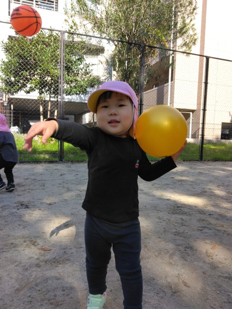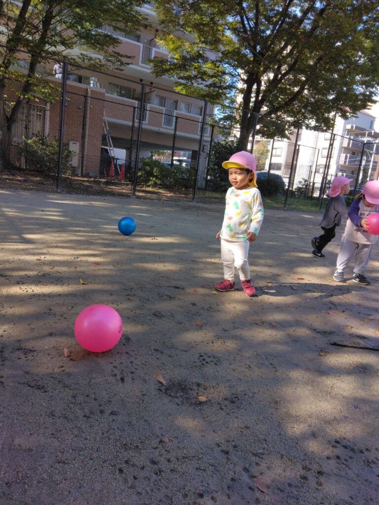 「どれにしようかな??」と悩みながらボールを目指すお友達、「あれが欲しい!」と目的のボールにめがけて走り出すお友達…。どのお友達も表情は真剣です!