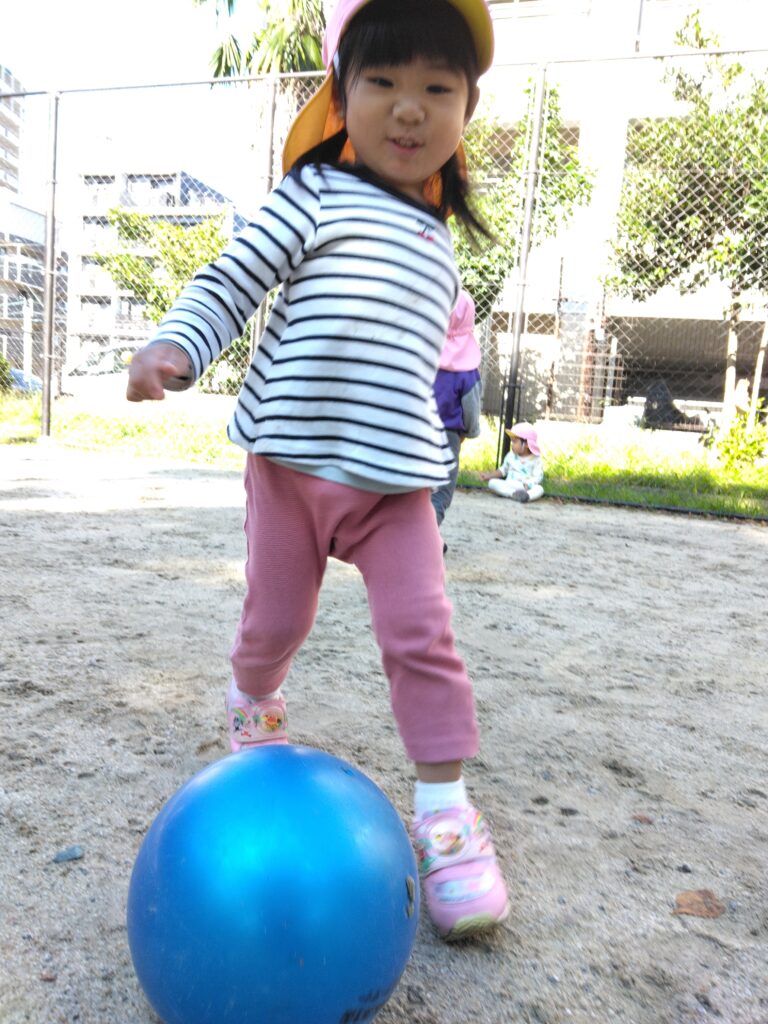 追いかけているときに不意に足がボールに当たって、また遠くに転がって追いかけて…そんなハプニングもまた楽しい瞬間ですね😉