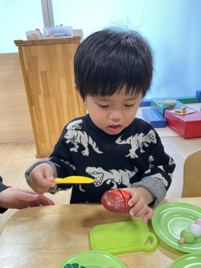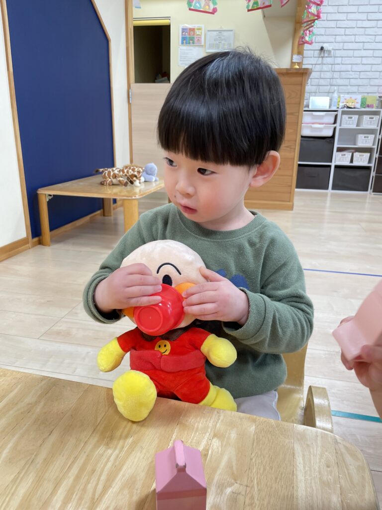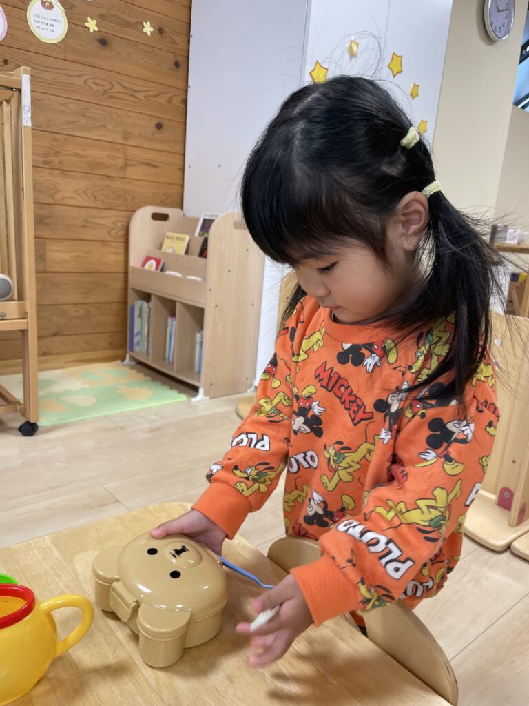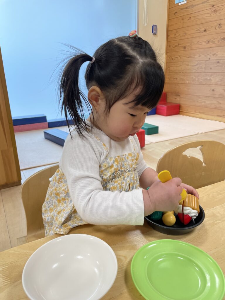 活動時間は、ままごとセットを使い見立て遊びをしました。