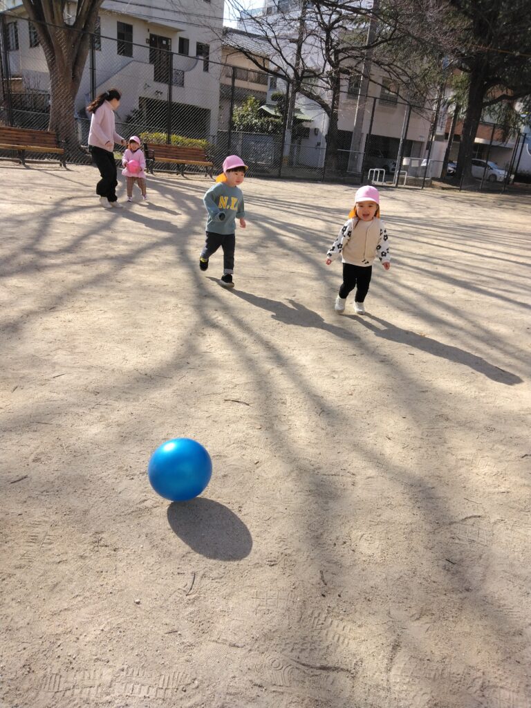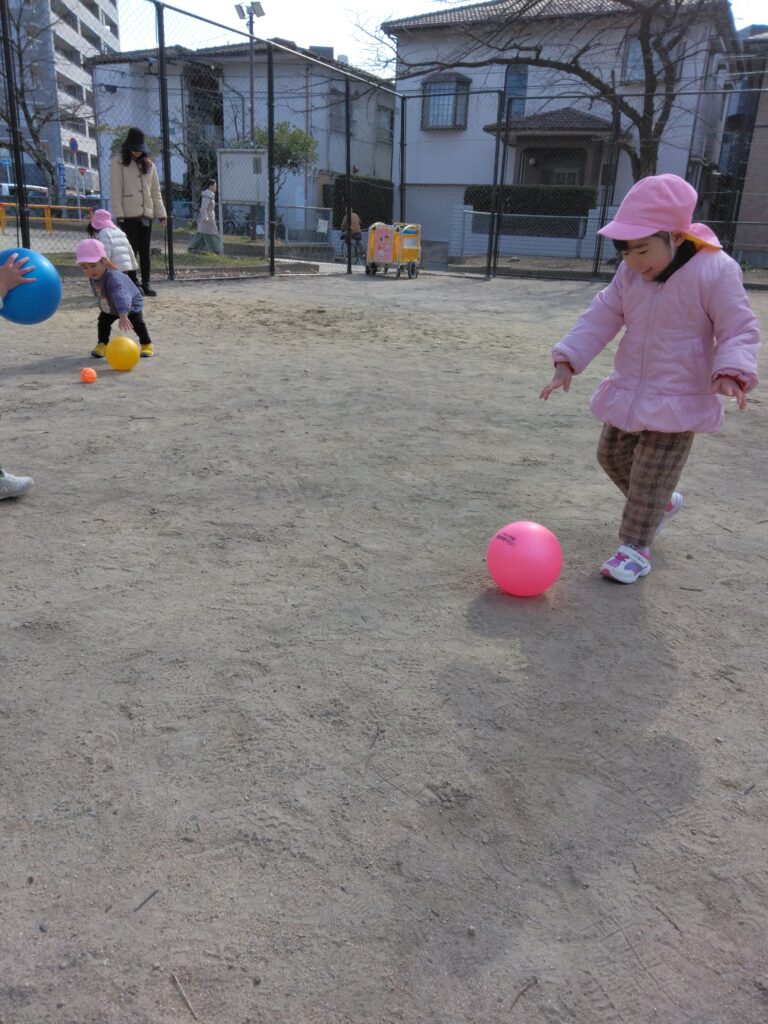「待って~!」とボールを追いかけており、気分はサッカー選手です⚽