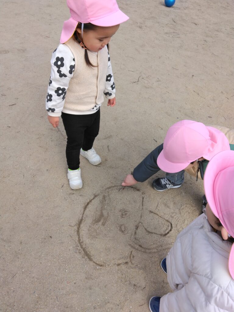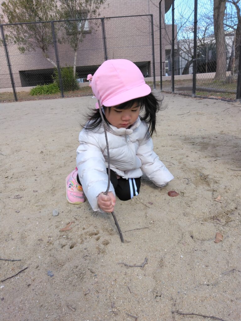 砂山に枝を立ててケーキを作るお友達もいましたよ🎶