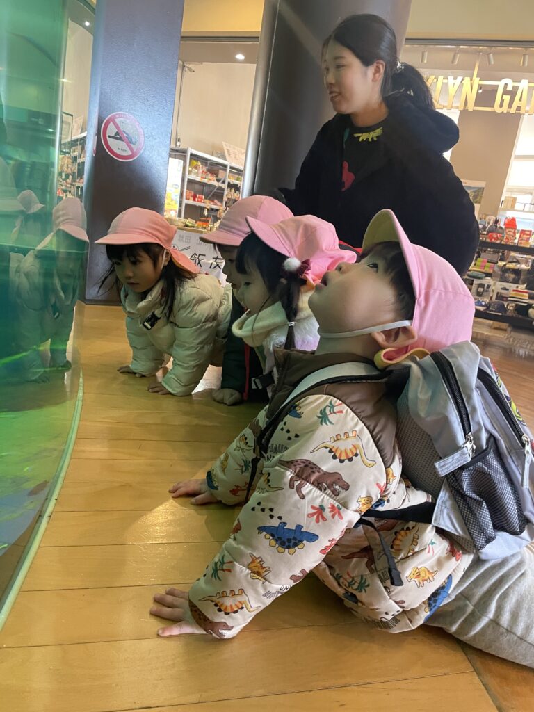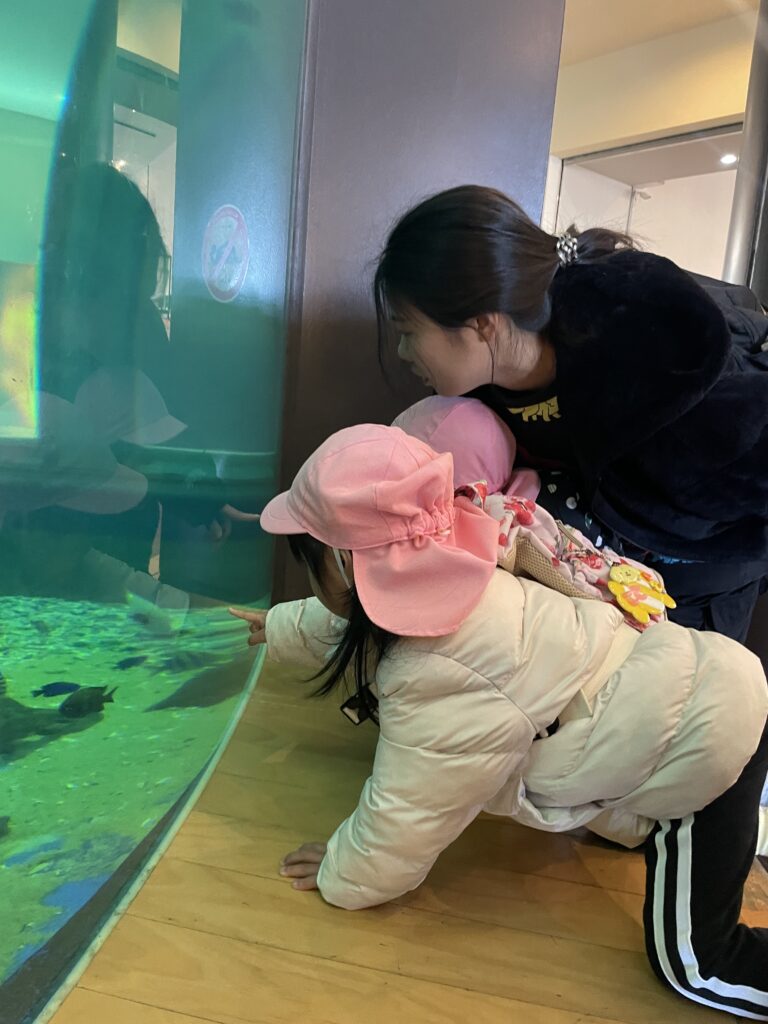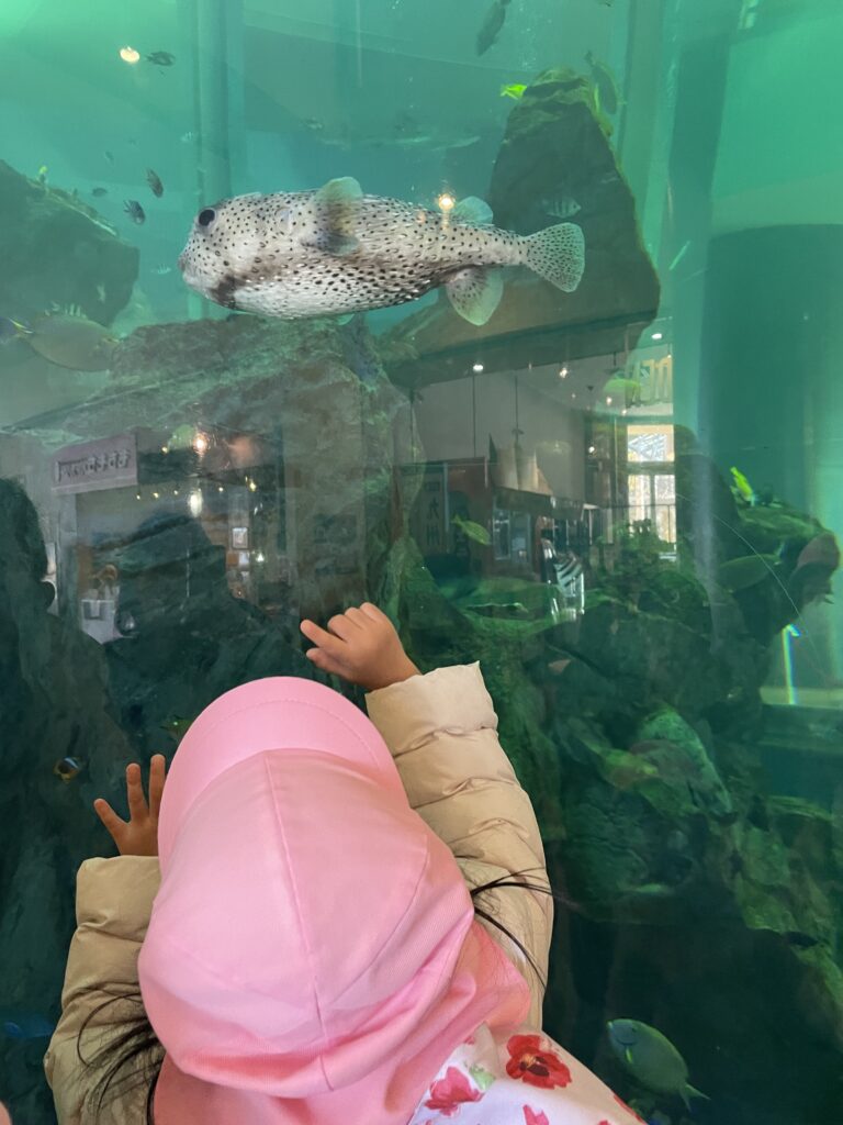 大きな水槽の前では、魚や亀に大興奮✨✨