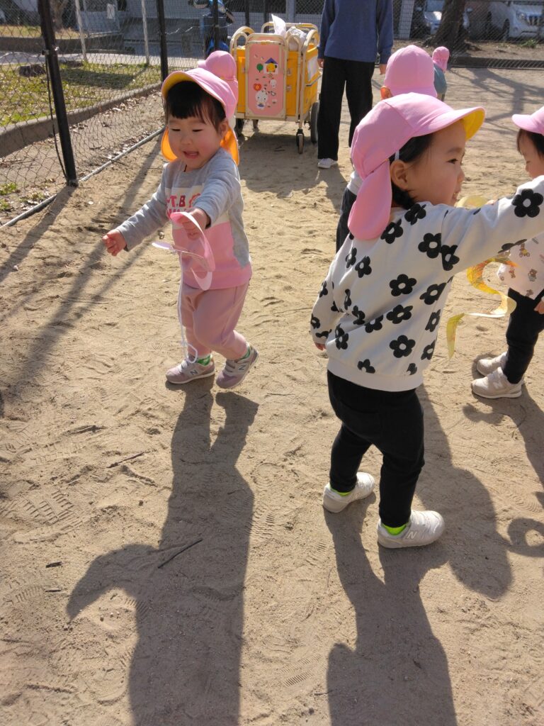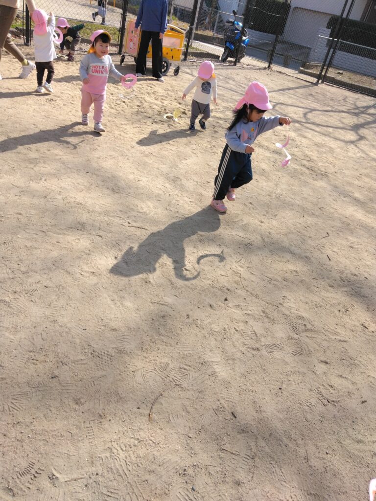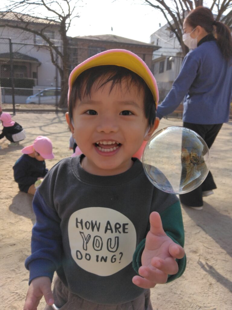 シャボン玉を追いかけたり、保育士と追いかけっこをしたりするお友達もいます🤗