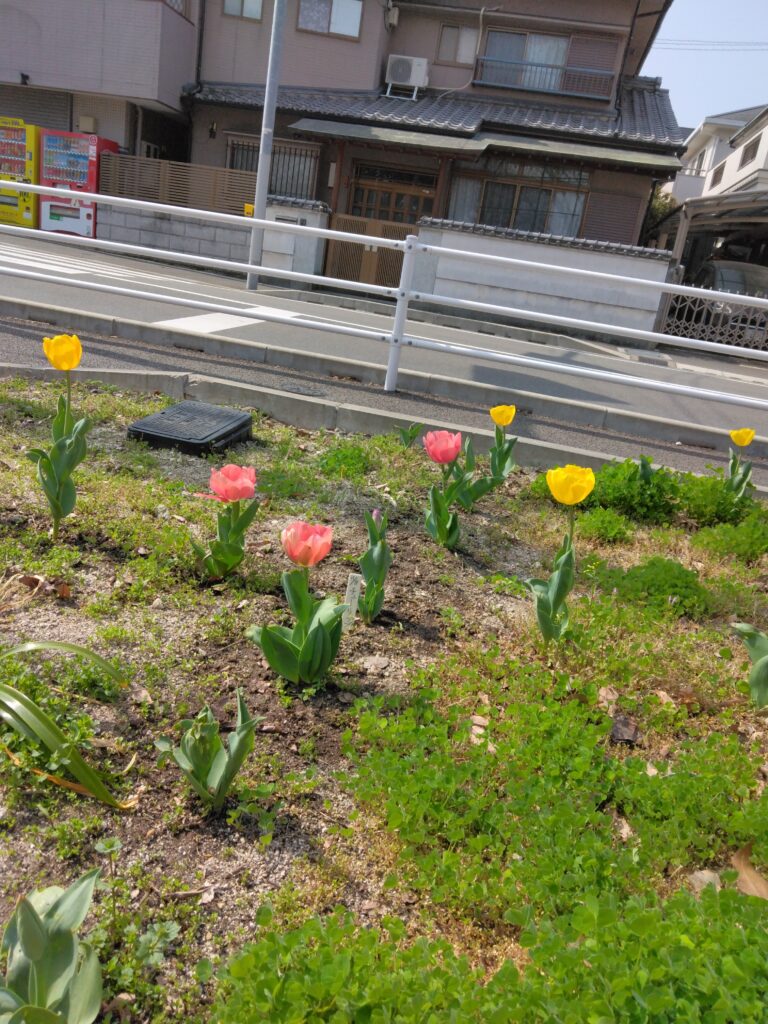 天代公園に行くと、チューリップや桜の花が綺麗に咲いていました🌸