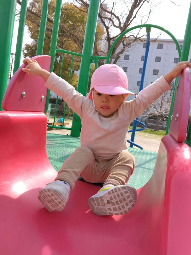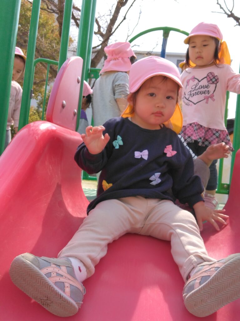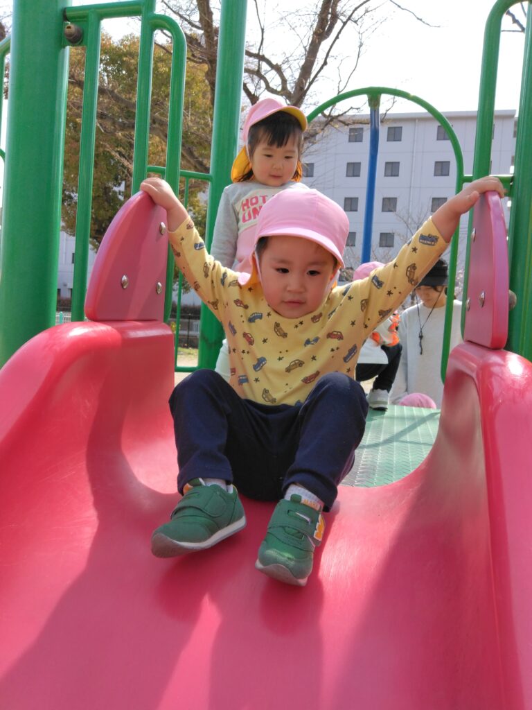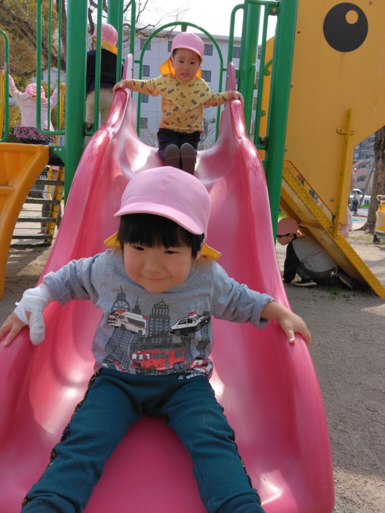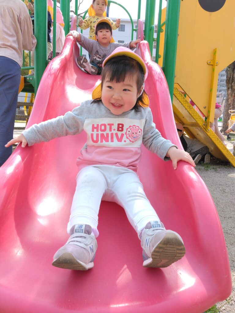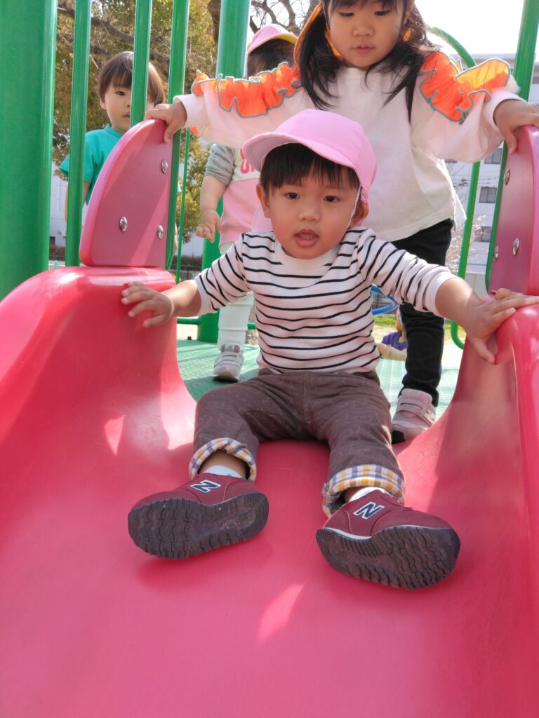 大好きな滑り台では「しゅー!」と言いながら楽しむお友達です🤗