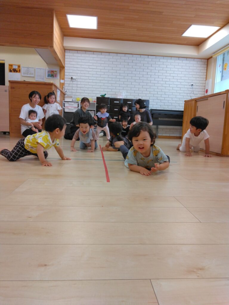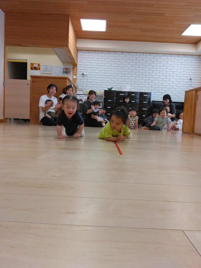 「よーいドン!」の掛け声に「負けないぞ!」と意気込んでゴールまで一直線。ゴールで待つ保育者に真剣な眼差しを向けていました👀✨