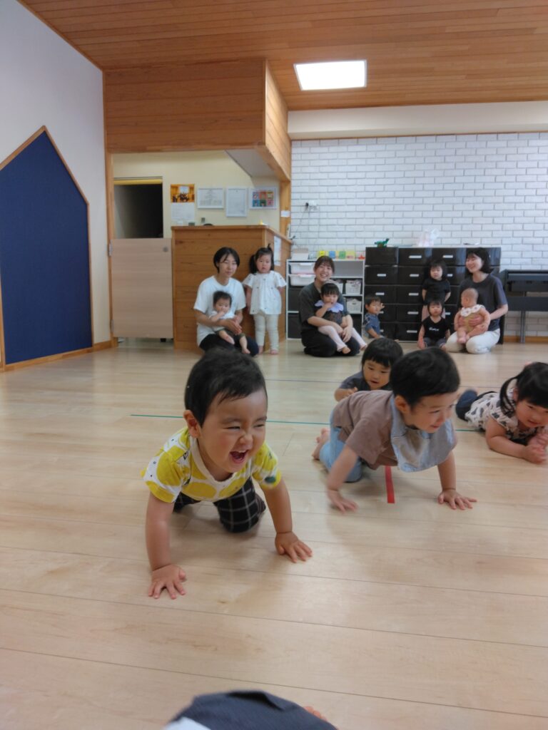 ワニ歩きが出来るお友達はワニに、難しいお友達はライオンにへ~んしん!