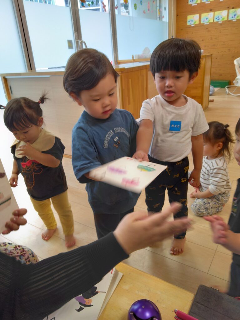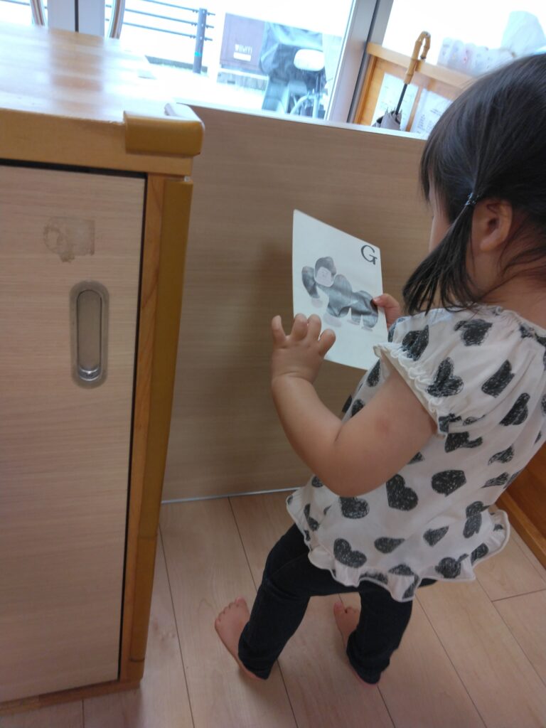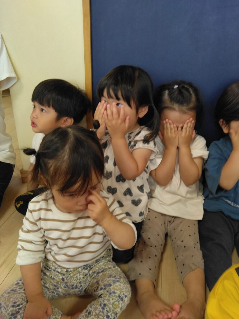 動物の絵などが描かれたカードを探すゲームをしました✨みんなが目を隠している間に、英語の先生が色んな所にカードを隠し、さぁみんな探すぞー!と楽しそうな姿が見れました🎶