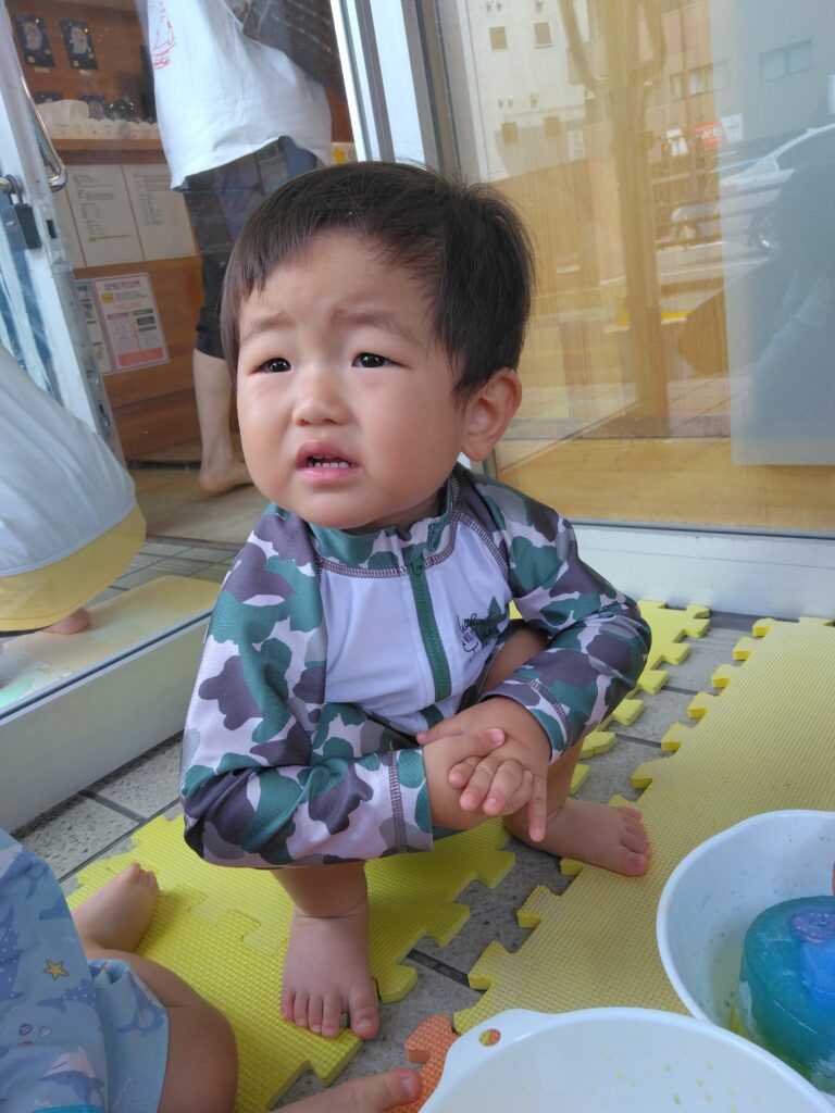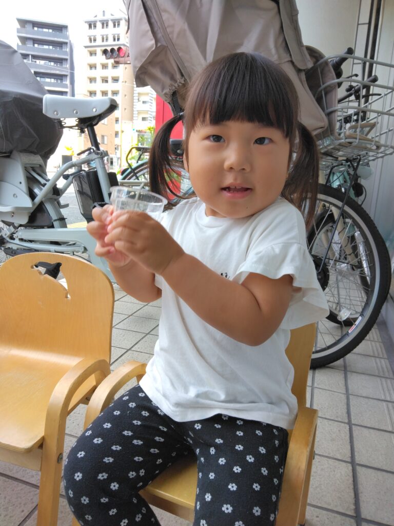 「つめたーい」と氷の冷たさにびっくりするお友達🤭