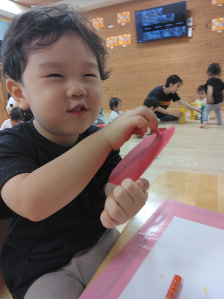 画用紙が動かないように反対の手で抑えたり、力の加減で筆圧が様々だったりと成長を感じます🥰