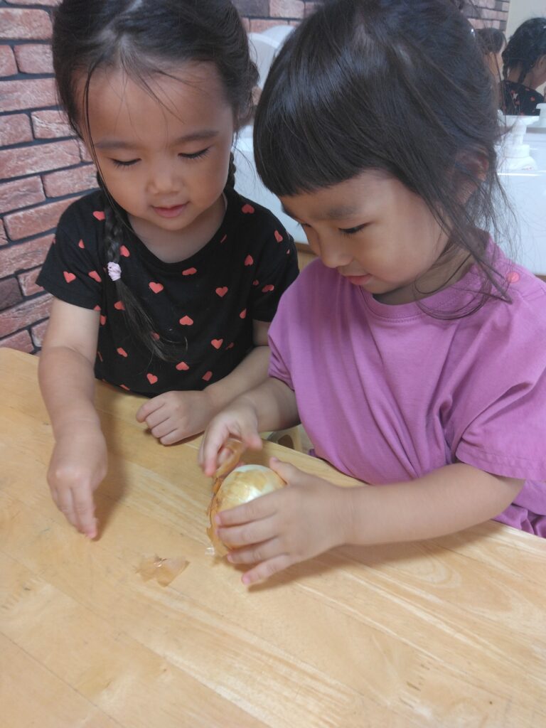 お話をよく聞いて、1枚ずつ皮を剥いていきます。一生懸命さが表情から伝わりますね👏✨