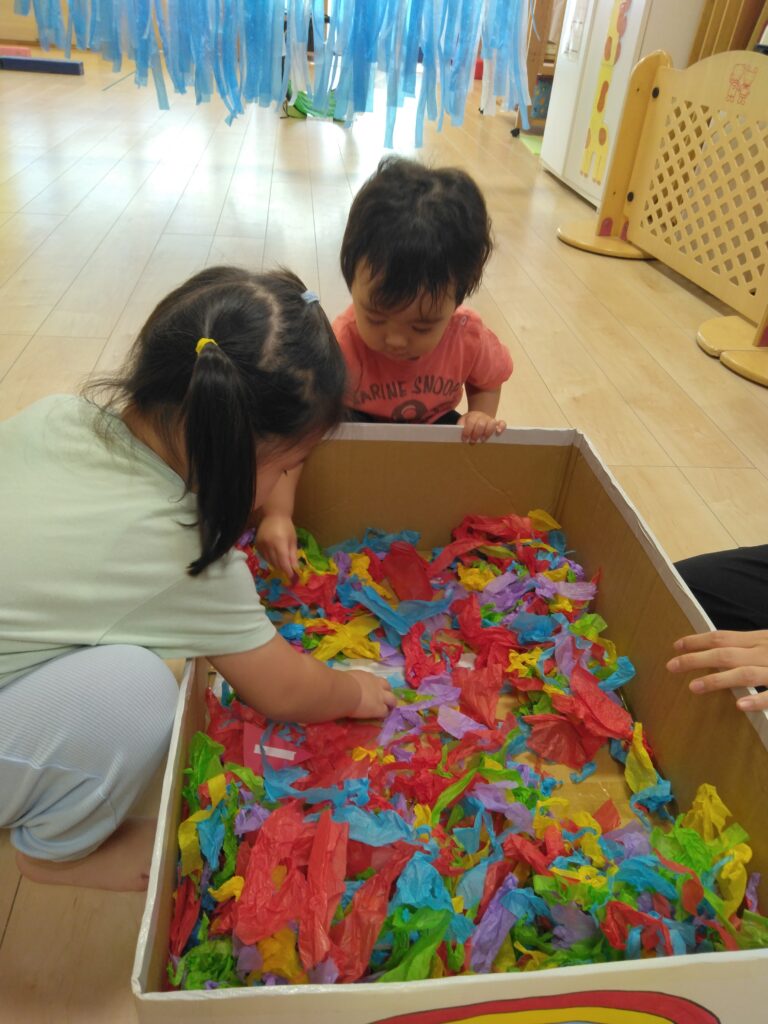 最後は太陽の欠片探しです☀「どこかな~」とみんな一生懸命で、見つけると「あったー!」と嬉しそうに教えてくれました😆💓