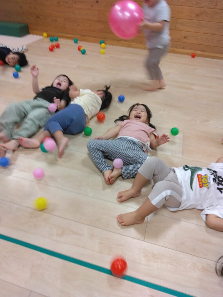 好きな色のボールを集めたり投げたりと、楽しそうな子どもたち。