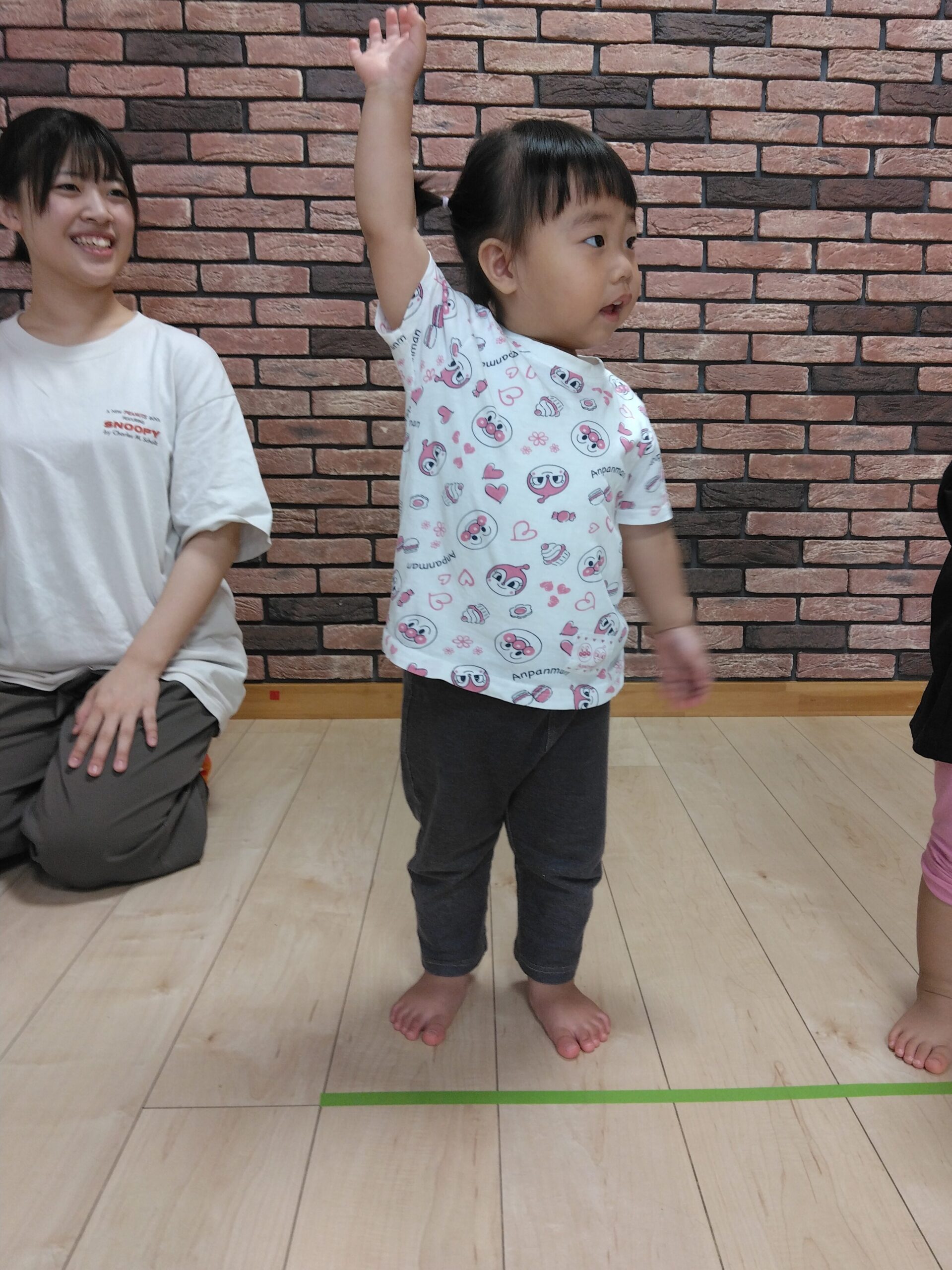 そんな2歳児さんを見て、「私たちも出来るもん!」とカッコいいお返事を見せてくれた1歳児さん🌟ちょっぴり恥ずかしくなって照れたり、「上手~」と拍手したりするお友達もいましたよ✨