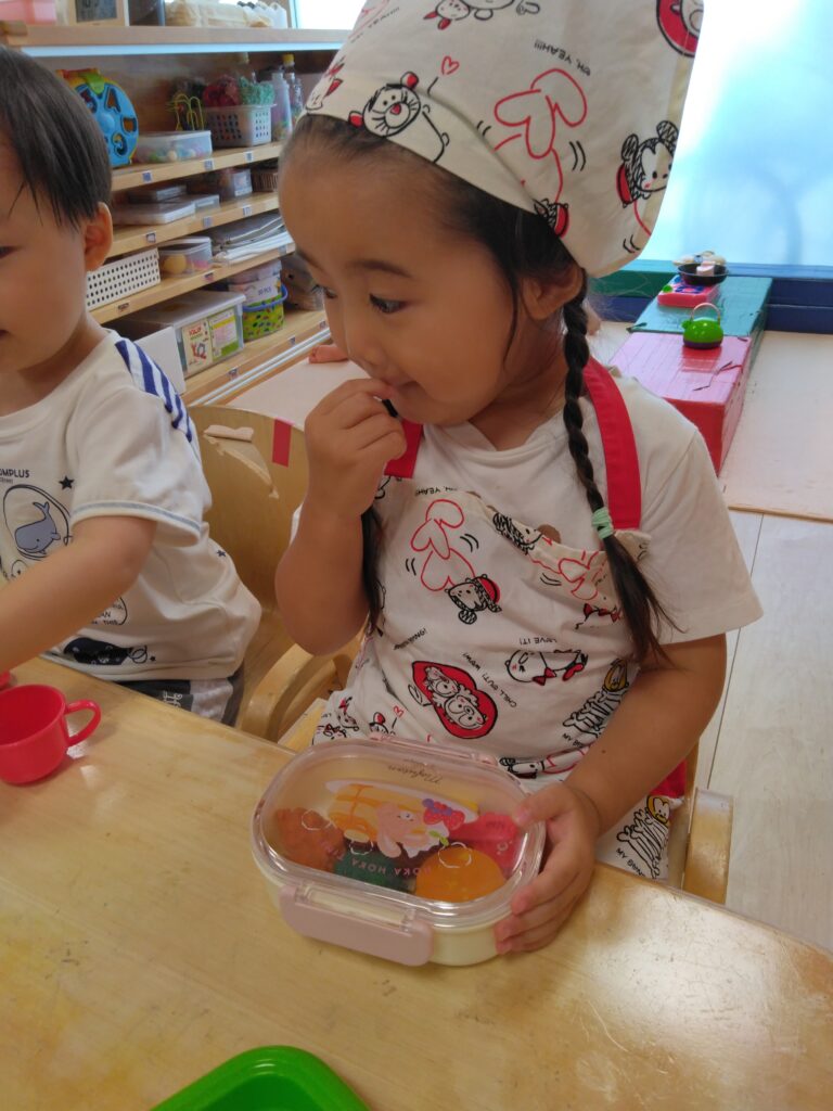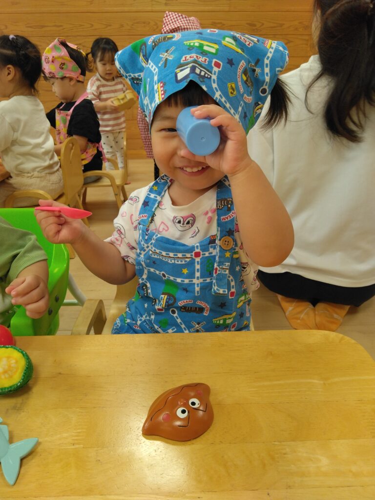 「出来たよー!」「美味しいよー!」と言い、保育者や友達を誘っていましたよ😊