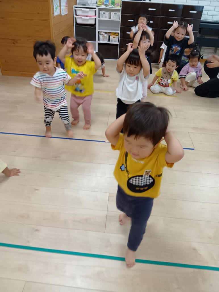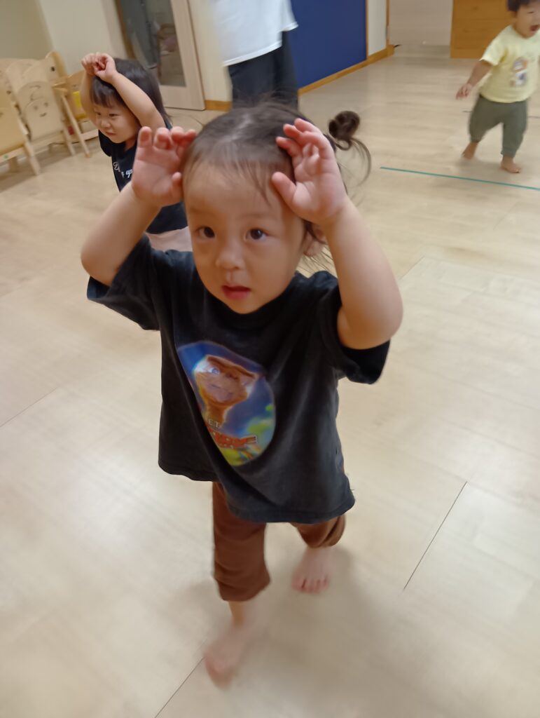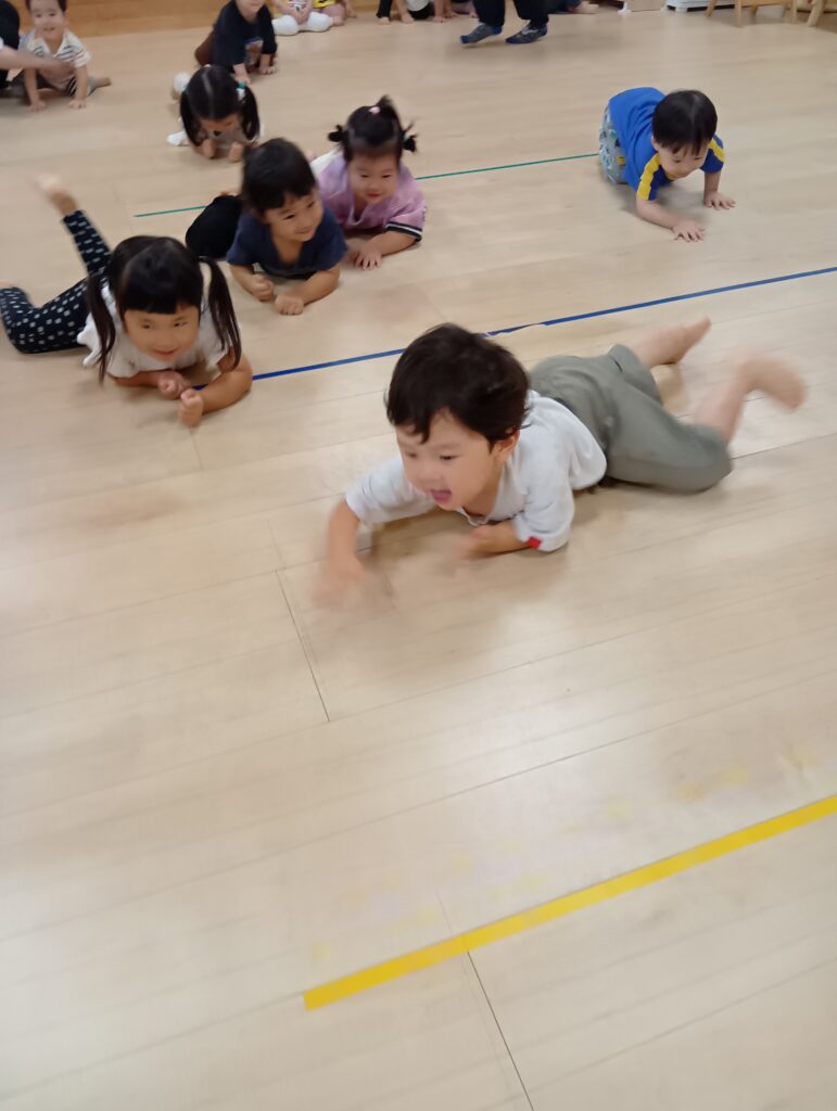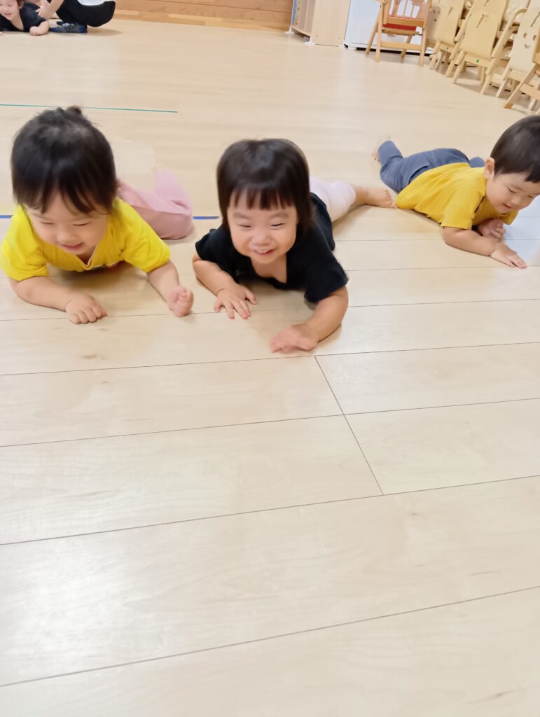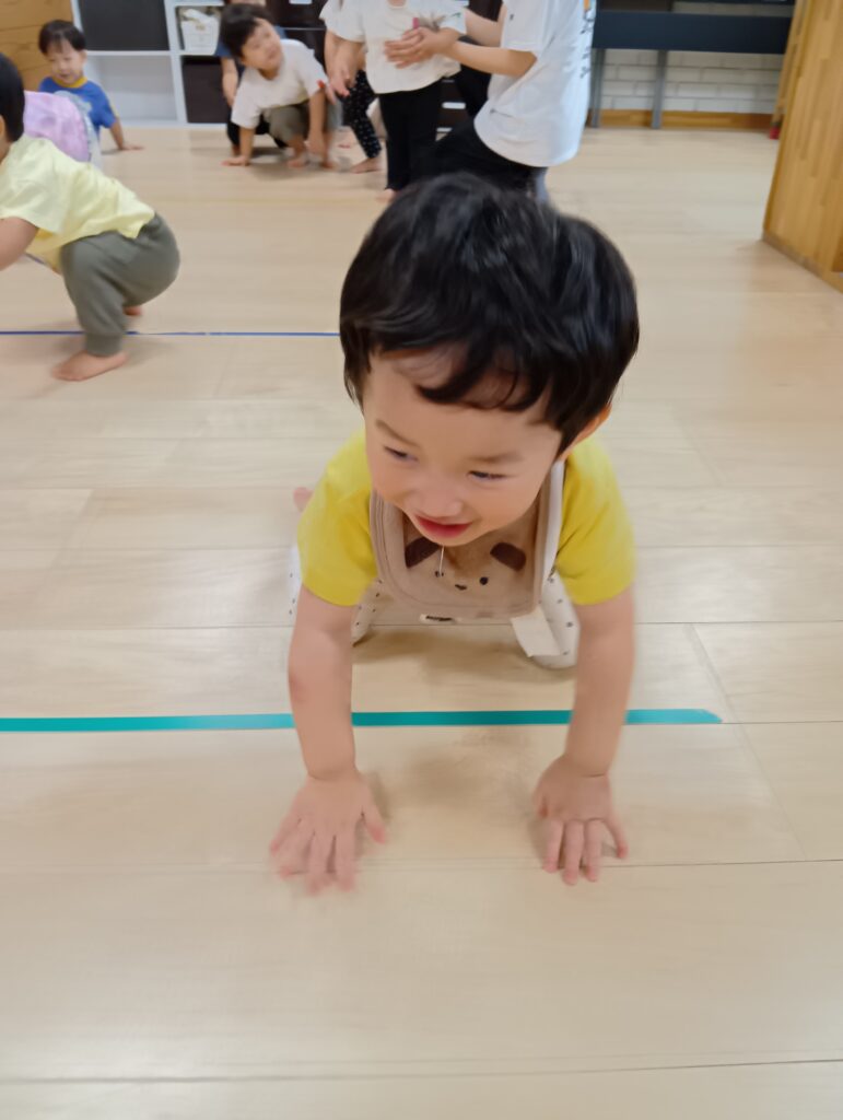 うさぎやカエルになりきってピョンピョンはねたり🐰🐸ワニになりきったり赤ちゃんになりきってハイハイして楽しみました♪