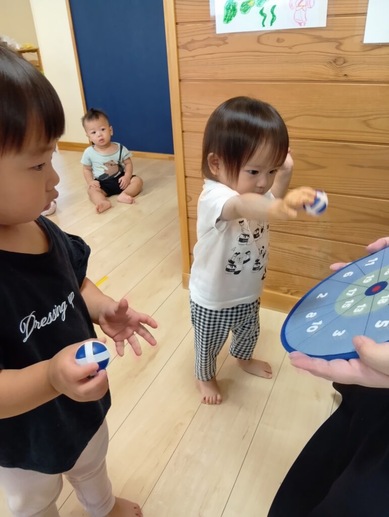 英語教室では、数字のボードに的あてゲームをしています👀