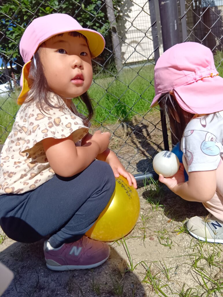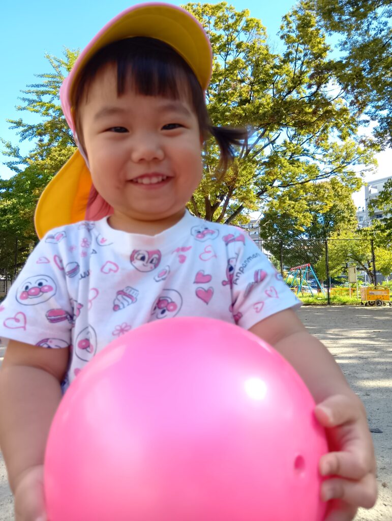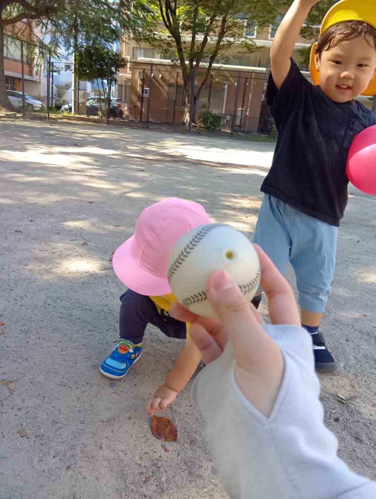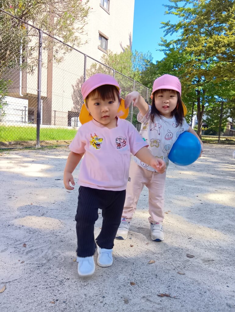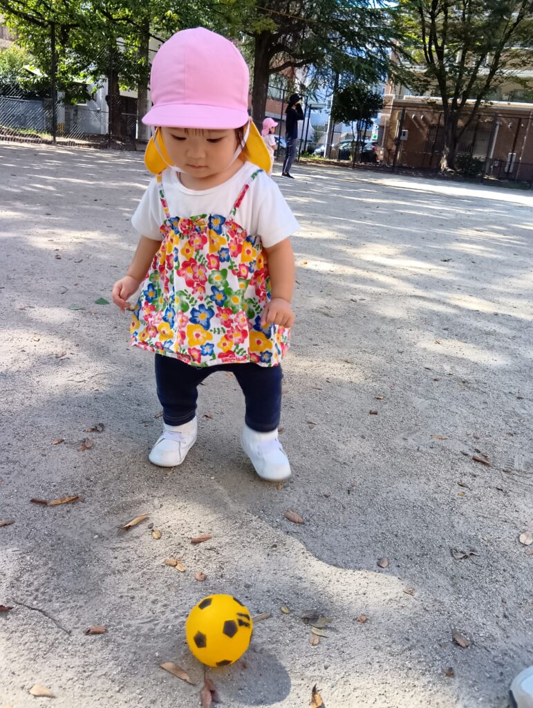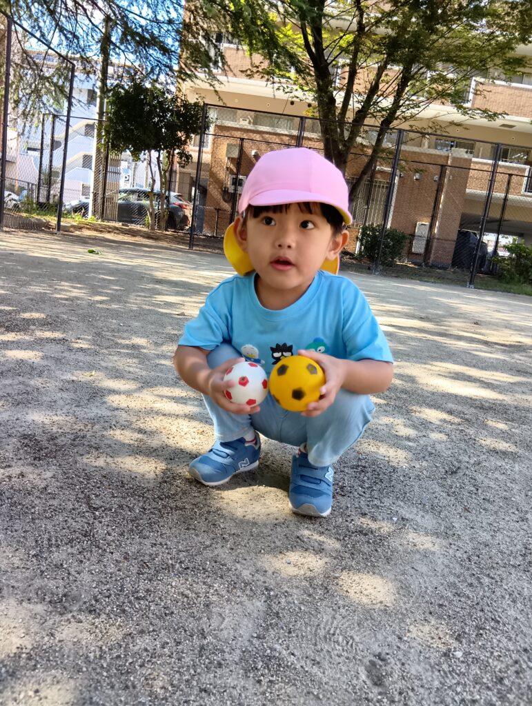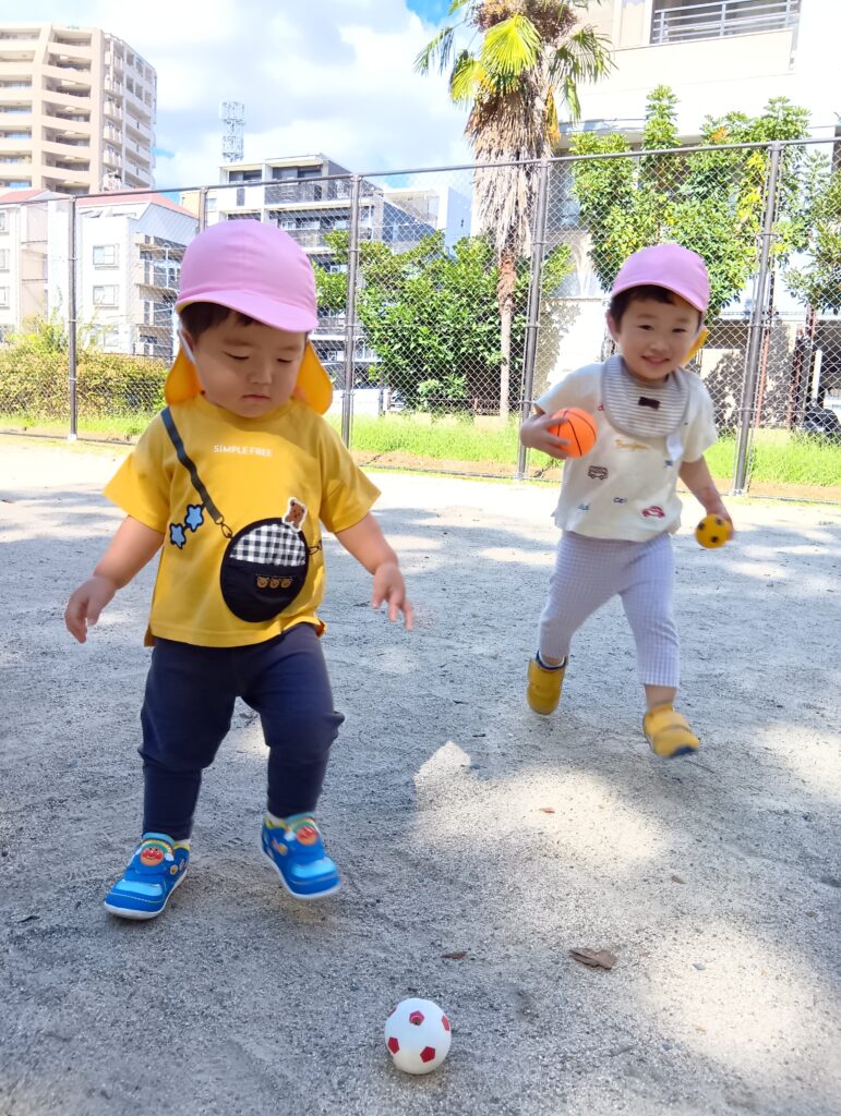 公園ではボール遊びをしました。ボールを両手に抱えて嬉しそうに走ったり、投げたり蹴ったりととっても楽しそうでした😊