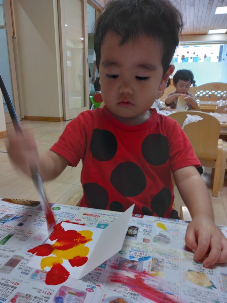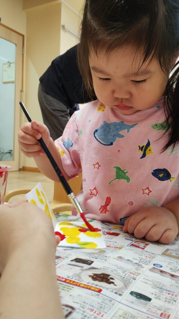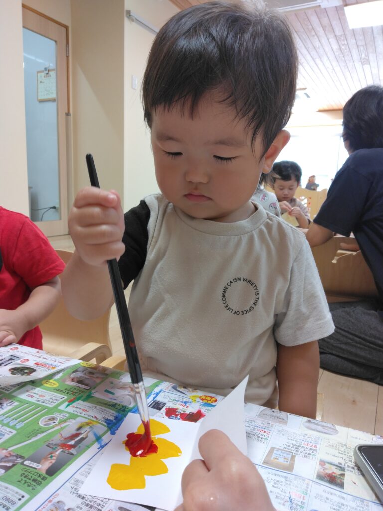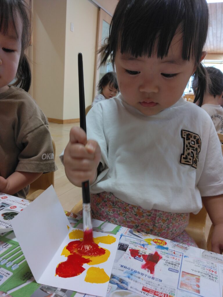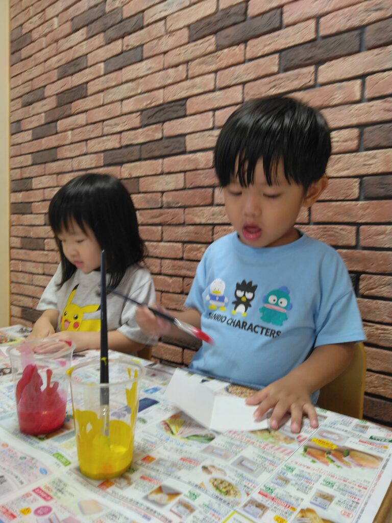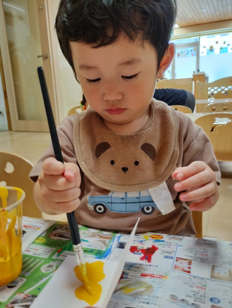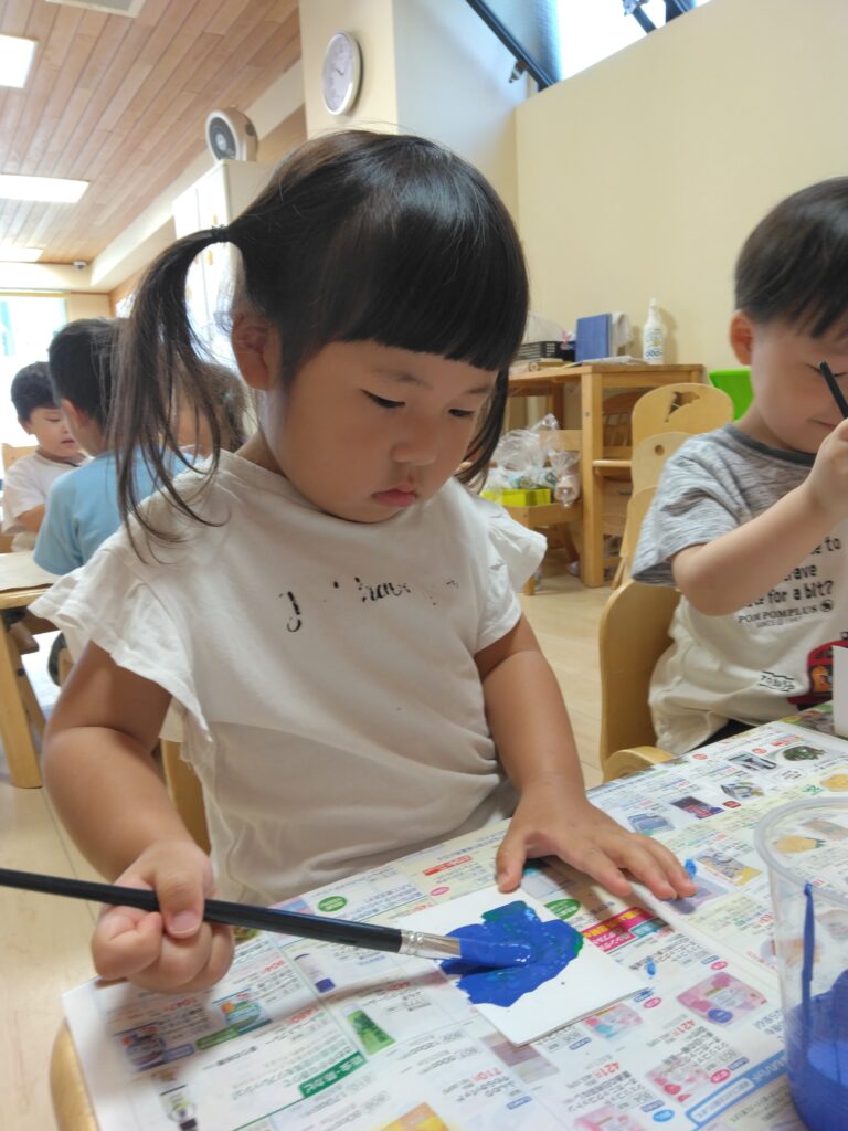 嬉しそうに筆を持ってみんな好きなように色を塗ったり絵を描いたり🖌️✨️とっても楽しそうに製作していました♪